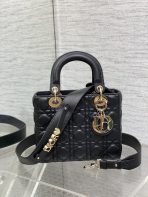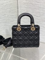 This is a replica CHRISTIAN DIOR Mini Lady Dior Bag in black. Main composition: lambskin. ,