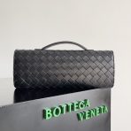 This is a replica BOTTEGA VENETA Andiamo Clutch Bag in Black. This intrecciato leather top handle clutch comes with metallic knot closure, including s,Size: Clutch,Dimensions: ,Signature knot closure,Signature intrecciato woven leather detailing