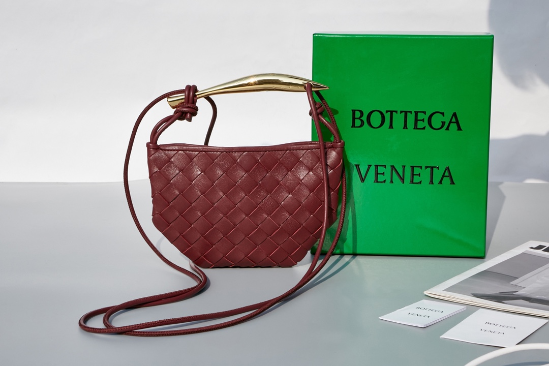 This is a replica BOTTEGA VENETA Sardine Intrecciato Leather Baby Bag in Barolo. This ‘Sardine’ shoulder bag is braided from strips of supple calf leather and hangs from a sculptural gold-tone top handle.,