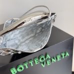 This is a replica BOTTEGA VENETA Sardine Intrecciato Leather Baby Bag in Silver. This ‘Sardine’ shoulder bag is braided from strips of supple calf leather and hangs from a sculptural gold-tone top handle.,