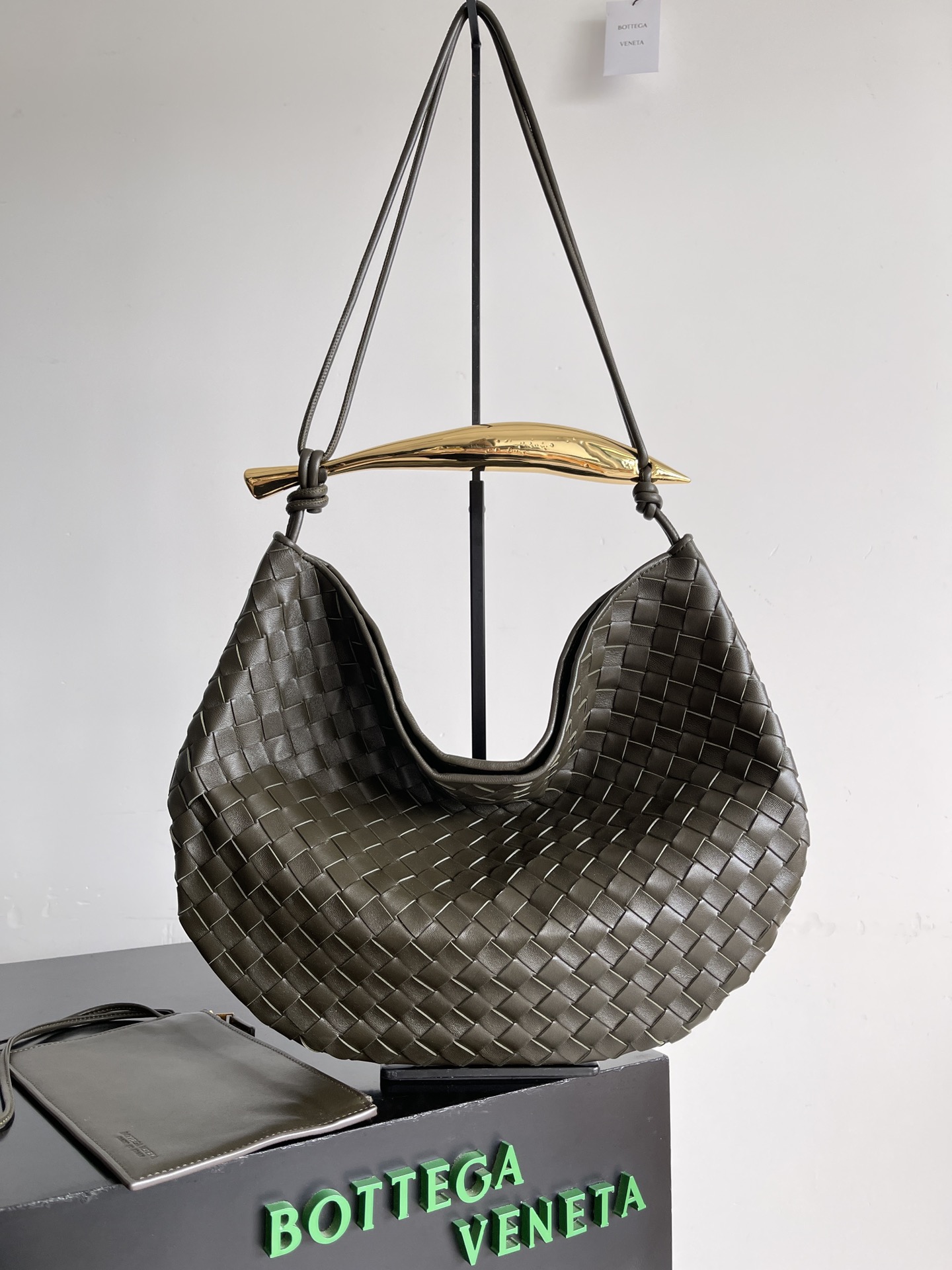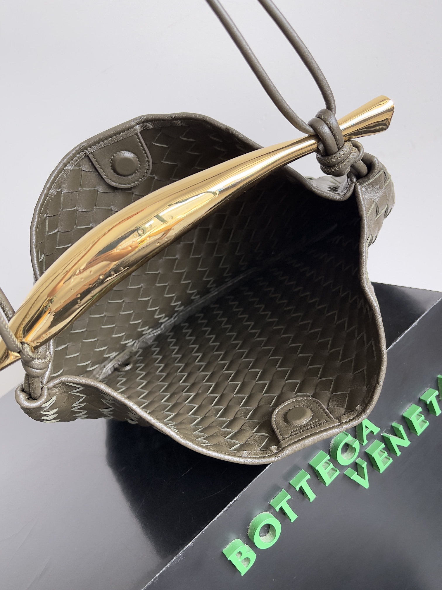 ,Size: Large,Sculptural metallic top handle, ,4.7,Dimensions: ,Magnetic closure,Signature intrecciato woven leather detailing