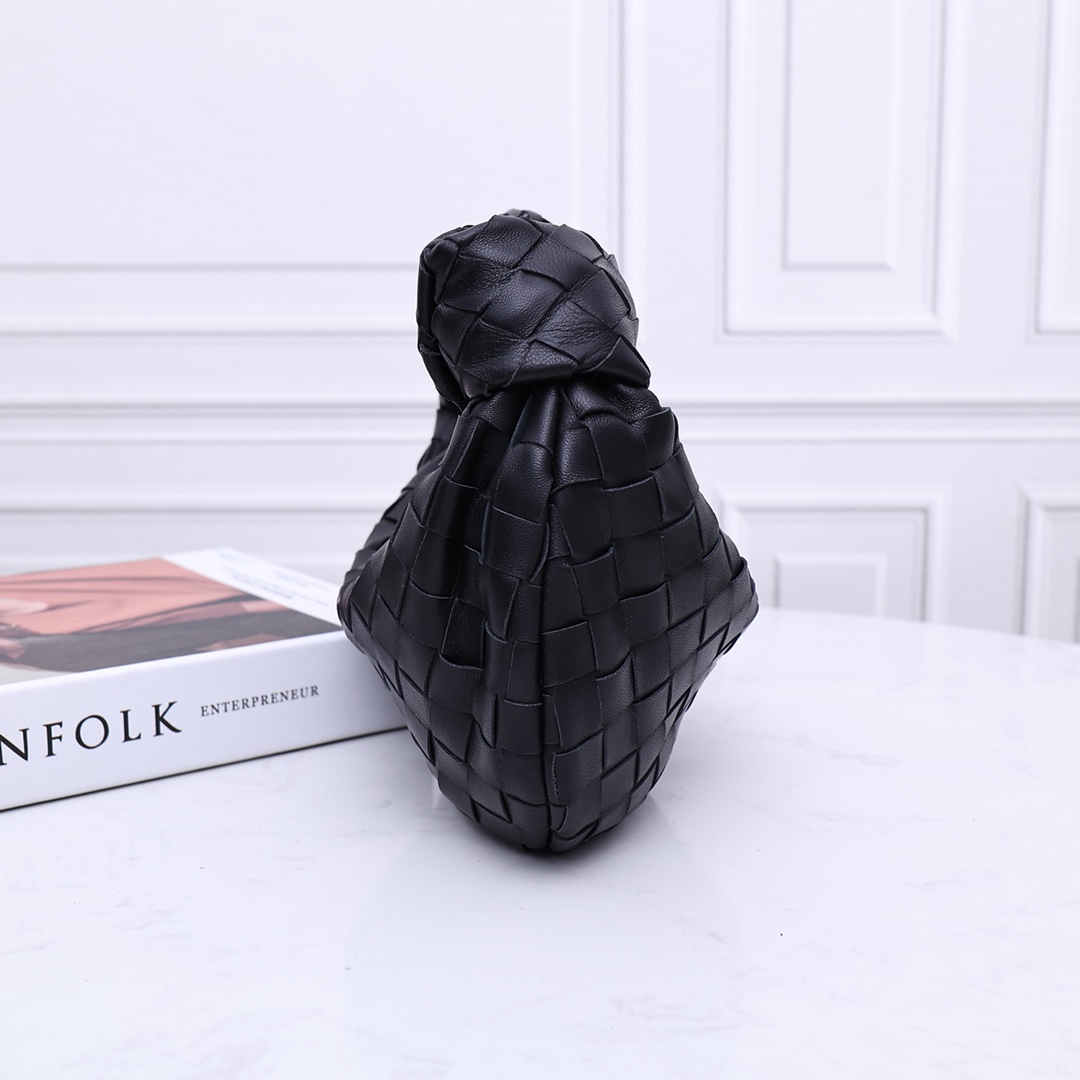 This is a replica BOTTEGA VENETA Mini Jodie in Black. This Top handle bag comes with rounded shape and signature knot in supple Intrecciato leather.,Size: Mini,Dimensions: ,Handle drop: 3.9” in,Single compartment,Zipper closure,Signature intrecciato woven leather detailing