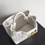 This is a replica BOTTEGA VENETA Small Andiamo in White. This intrecciato leather top handle bag comes with sliding cross-body strap. ,Lining: Lambskin bonded Intrecciato,