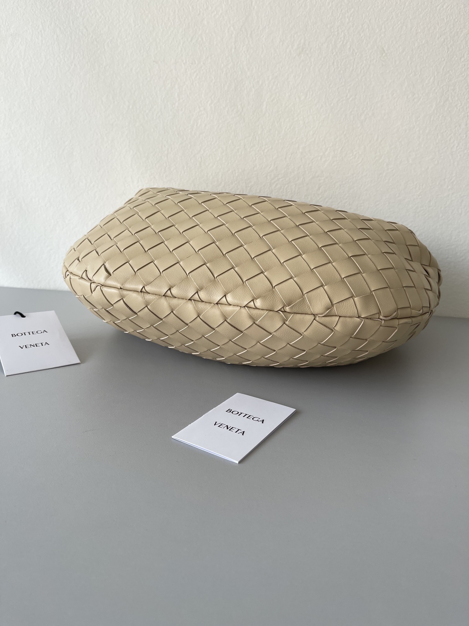 This is a replica BOTTEGA VENETA Small Jodie in Porridge. This Top handle bag comes with rounded shape and signature knot in supple Intrecciato leather.,Size: Small,Dimensions: ,Handle drop: 7.1” in,Single compartment,Zipper closure,Signature intrecciato woven leather detailing