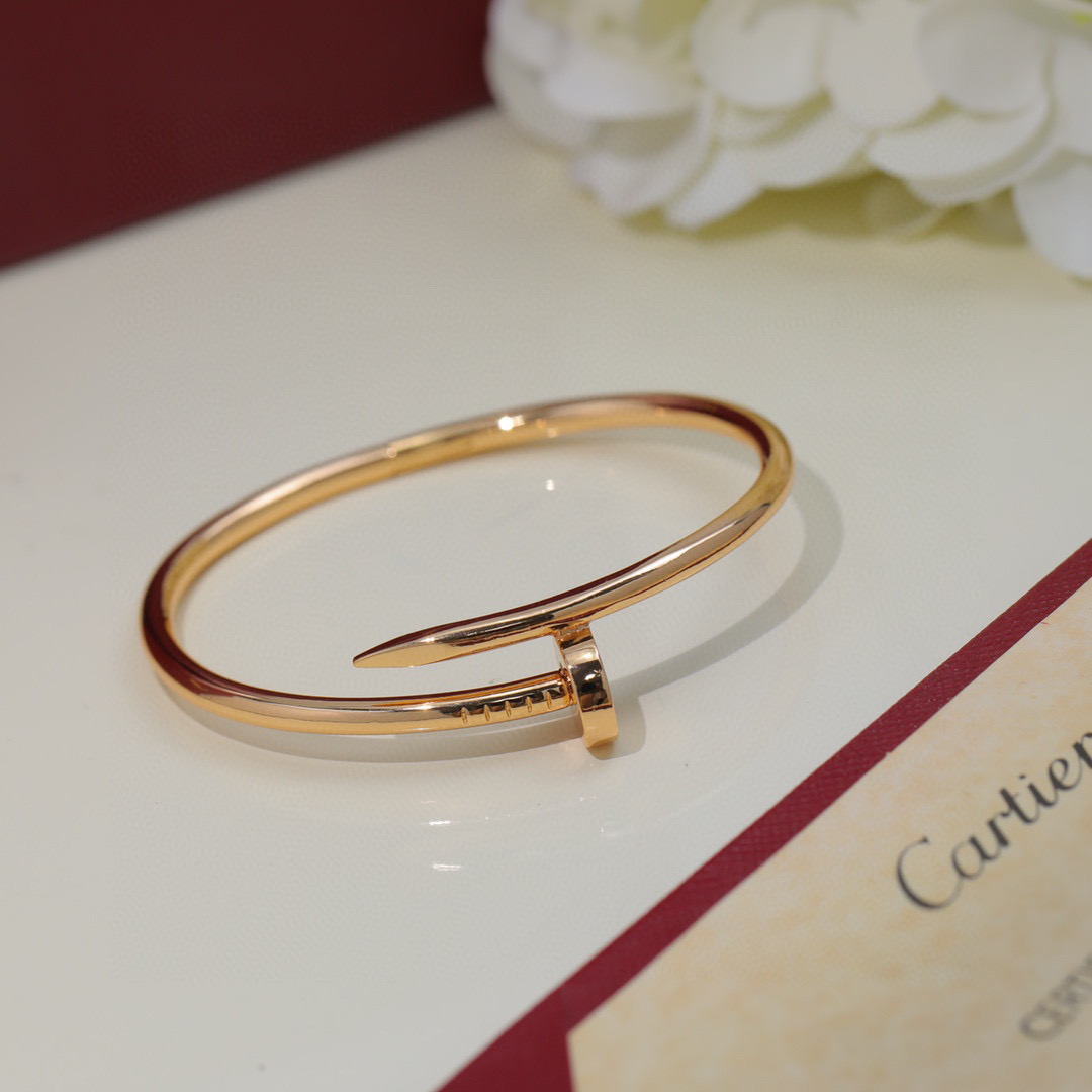 This is a replica of Cartier Juste un Clou bracelet, classic model. Coming in 3 colors – White Gold, Pink Gold and Yellow Gold, all bracelets are crafted with the exact same design as the original. Size can be selected when placing order.Product Description:Just un Clou bracelet18K white/yellow