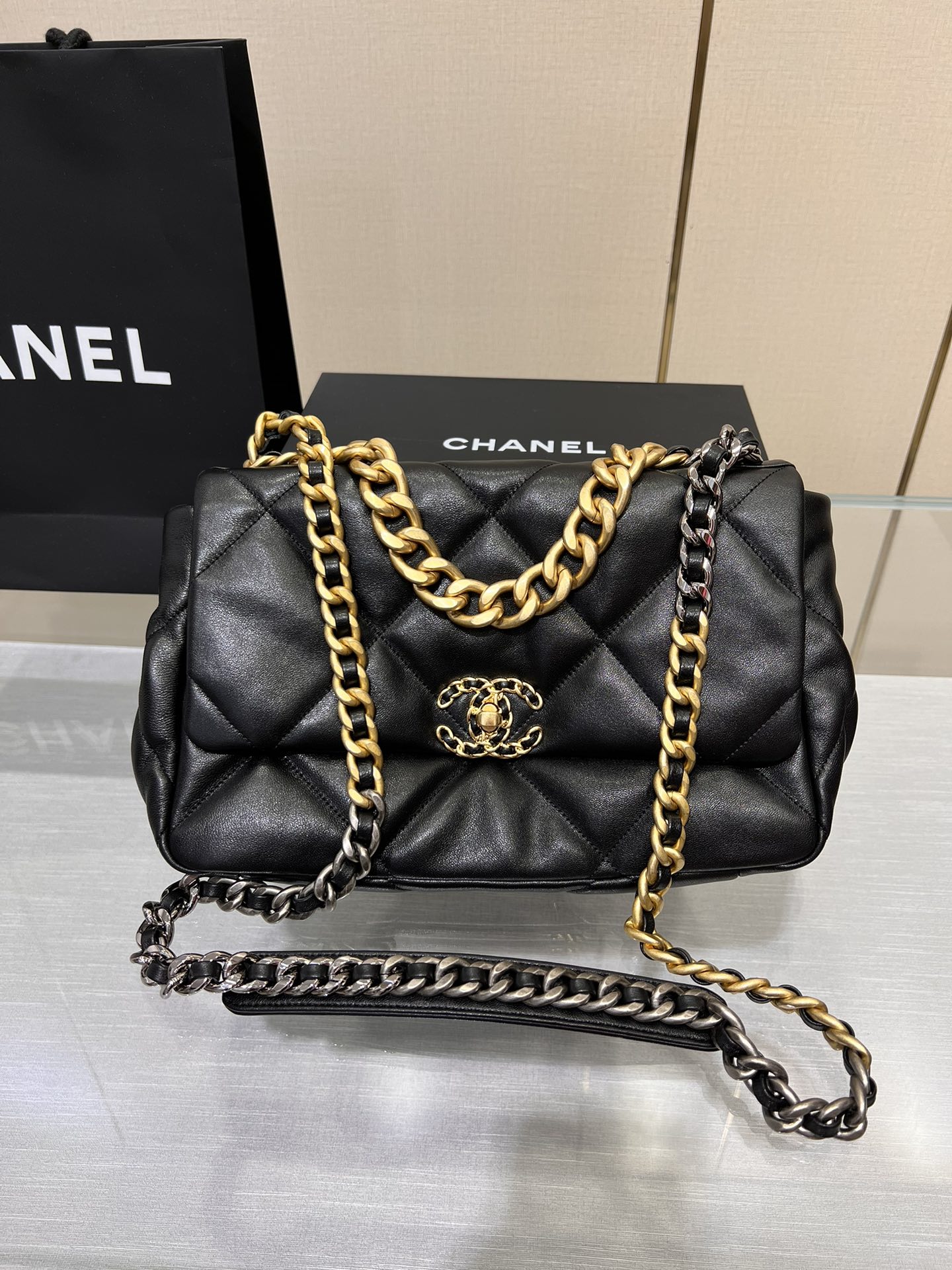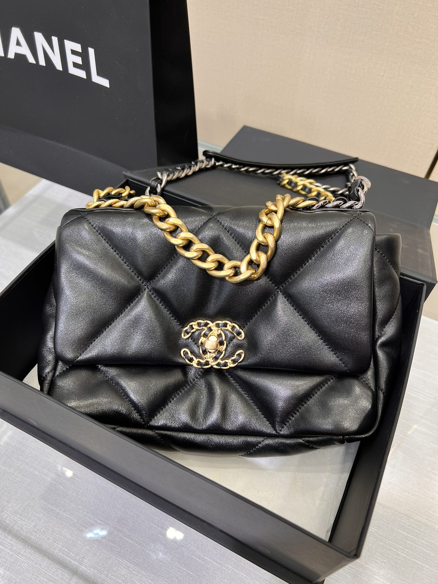 CHANEL 19 Handbag Shiny Lambskin, Gold-Tone, Silver-Tone & Ruthenium-Finish Metal