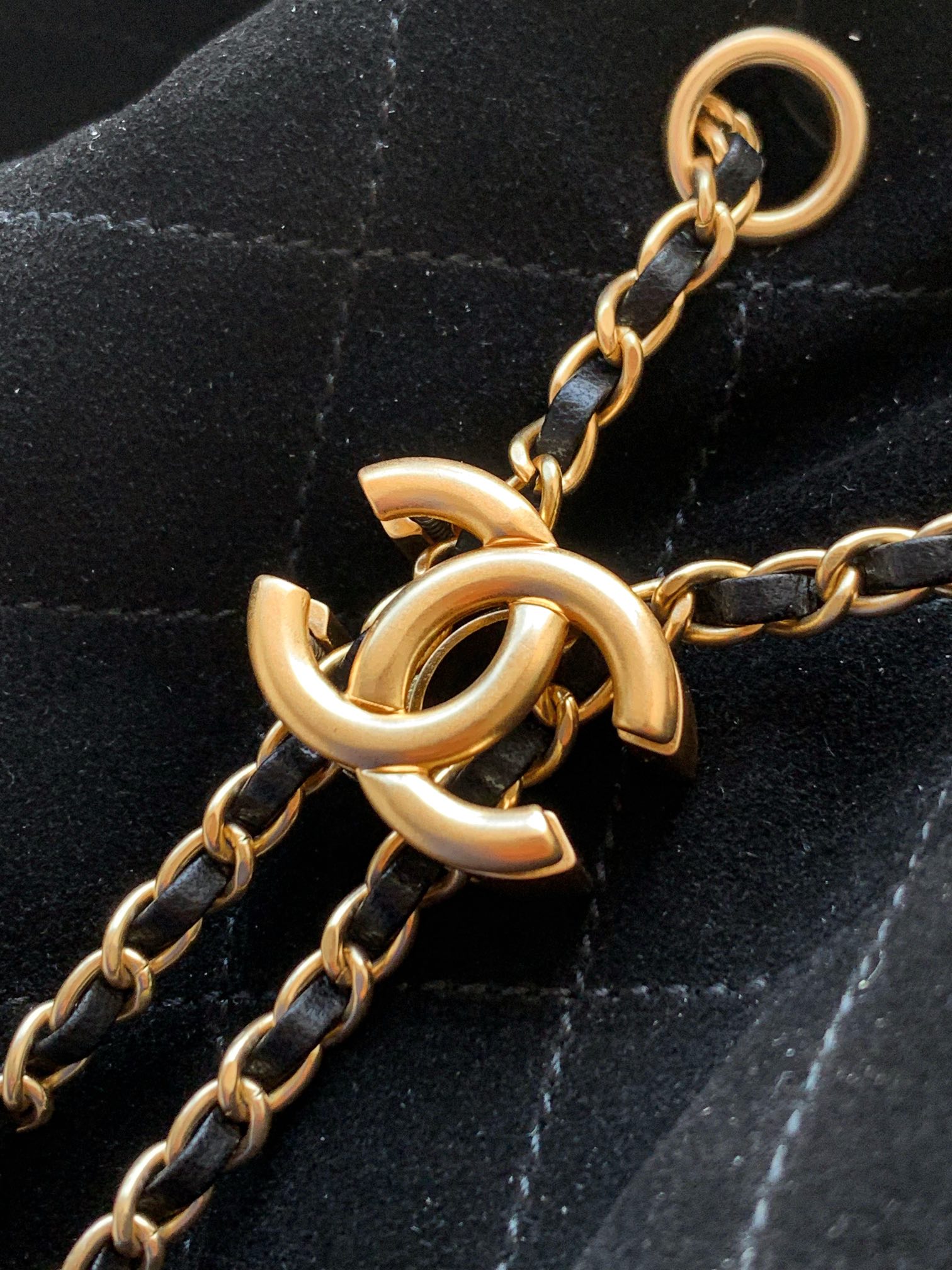 This is a replica CHANEL 25 Small Handbag.  Material: Suede Calfskin & Gold-Tone Metal Dimensions:  Reference: