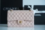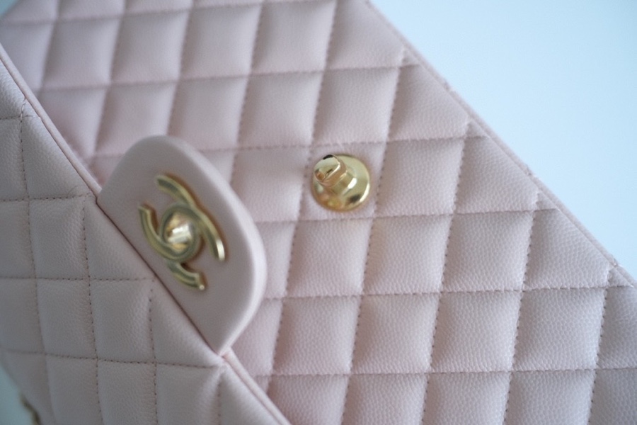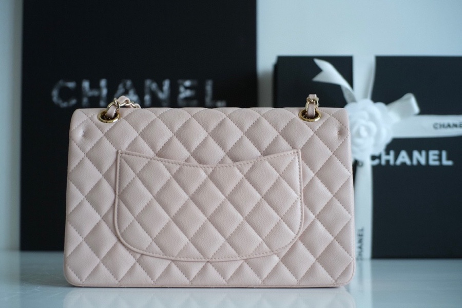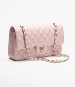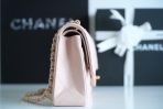 This is a replica CHANEL Classic 11.12 Flap Bag Lambskin & Gold-Tone Metal in Light pink. This classic double flap bag comes in light pink grained calfskin featuring gold-tone hardware. Open pocket on the back. Closes with classic CC-turn-lock on the front. Zipper pocket inside the flap. Outside pocket on the front under the flap. A lipstick pocket against the back. CC stitching on the inside flap. ,Size,