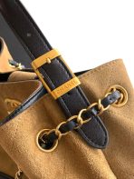 This is a replica CHANEL M¨¦tiers d’art Shopping Bag in beige suede calfskin and black shiny lambskin.  Material: Beige Suede Calfskin and Black Shiny Lambskin 24¡Á36¡Á14cm