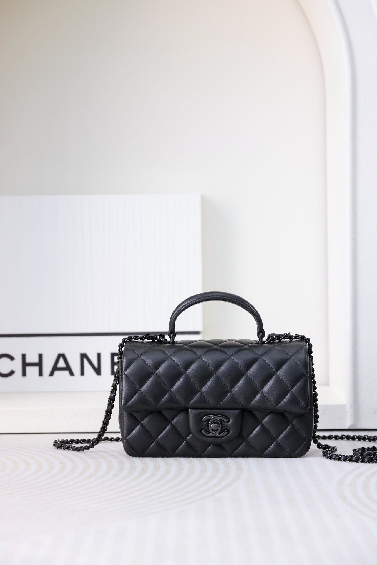 This is a replica CHANEL Mini Flap Bag with Top Handle