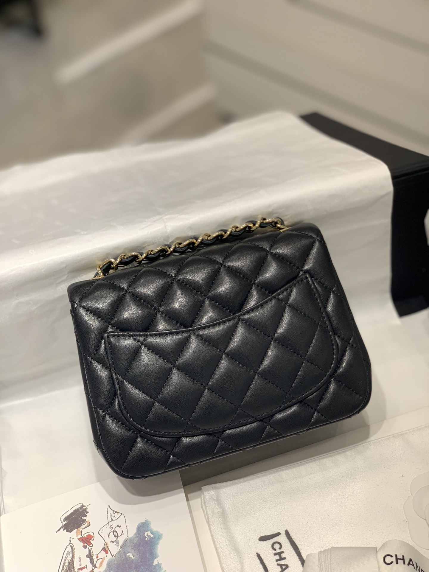 CHANEL Mini Square Classic Handbag Lambskin & Gold-Tone Metal
