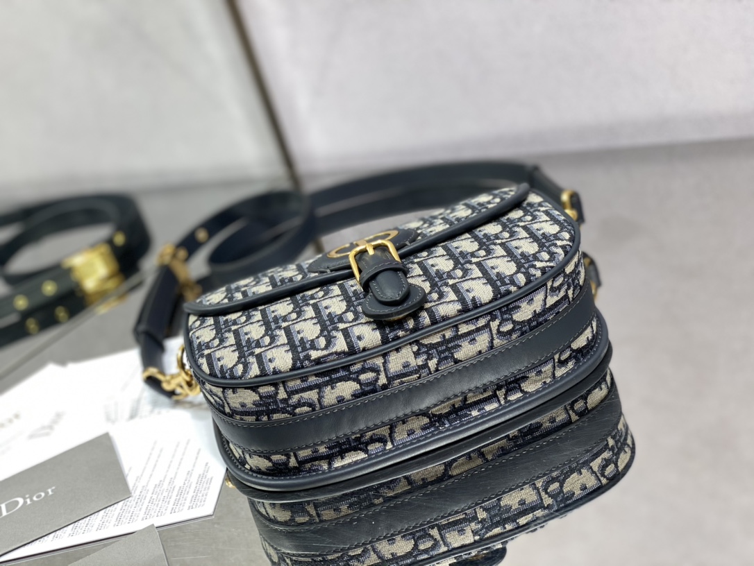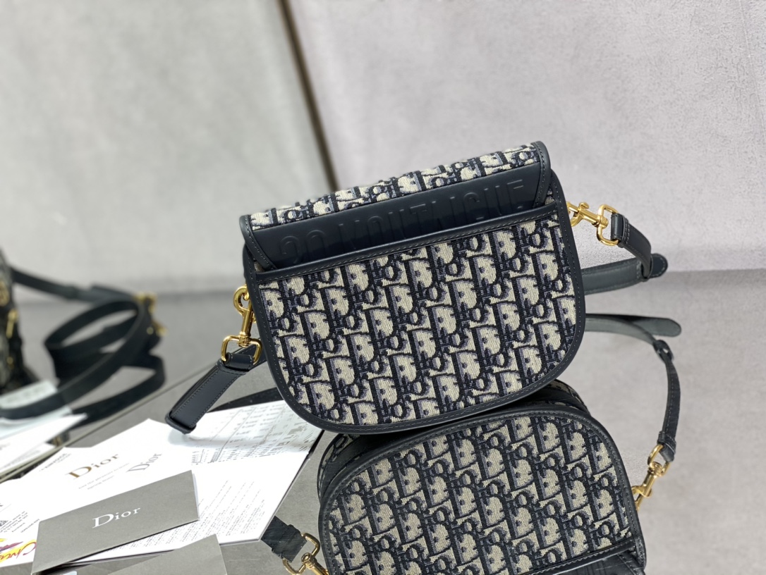 This is a replica CHRISTIAN DIOR Saddle Bag with Strap in black. This bag is finely crafted of Christian Dior Oblique monogram print canvas, with dark brown leather trim. The bag features a rear pocket, a magnetic clasp and polished gold hardware. The flap opens to a black fabric interior with a patch pocket.,