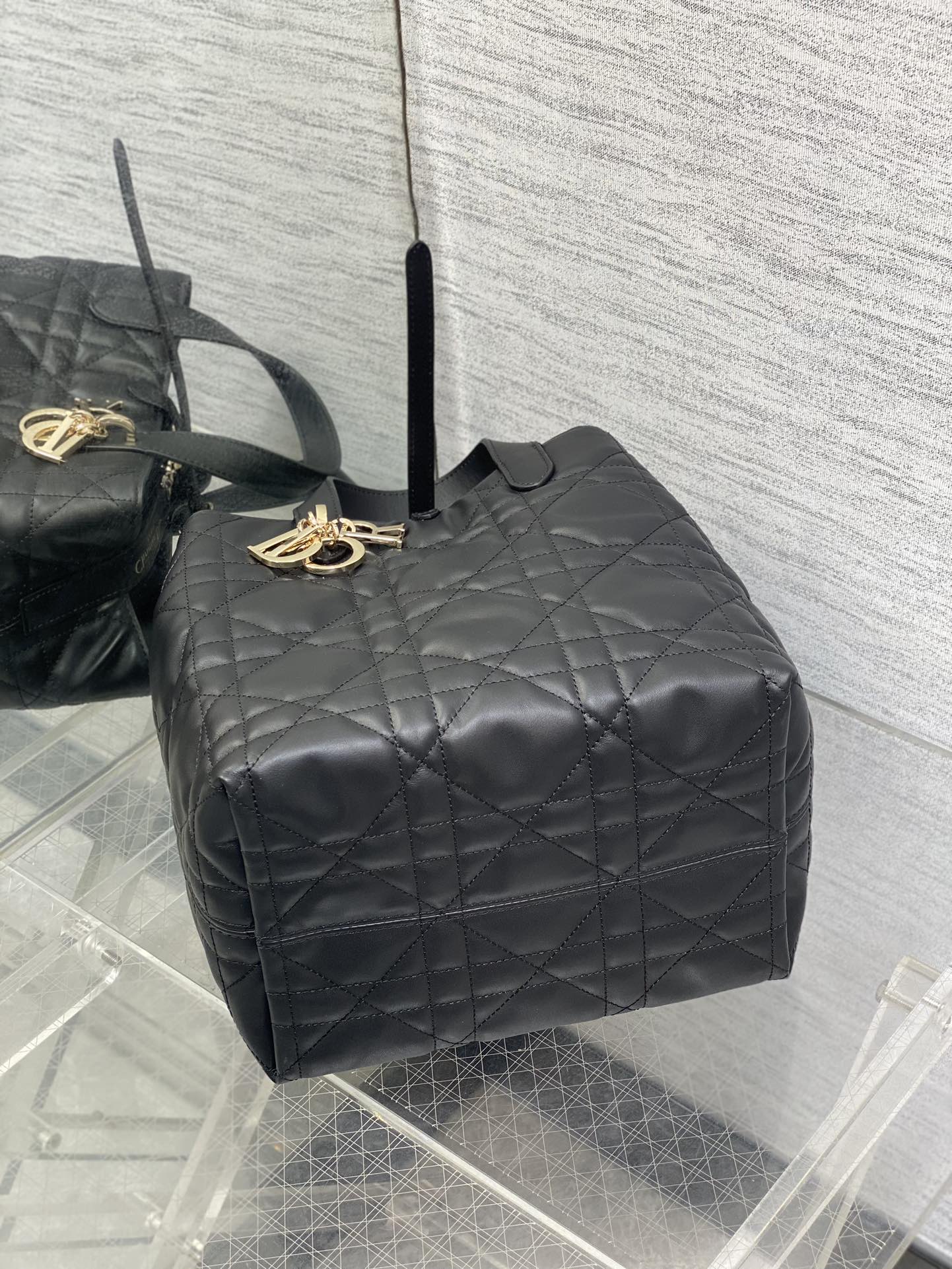 This is a replica CHRISTIAN DIOR Medium Dior Toujours Vertical Tote Bag in black. ,