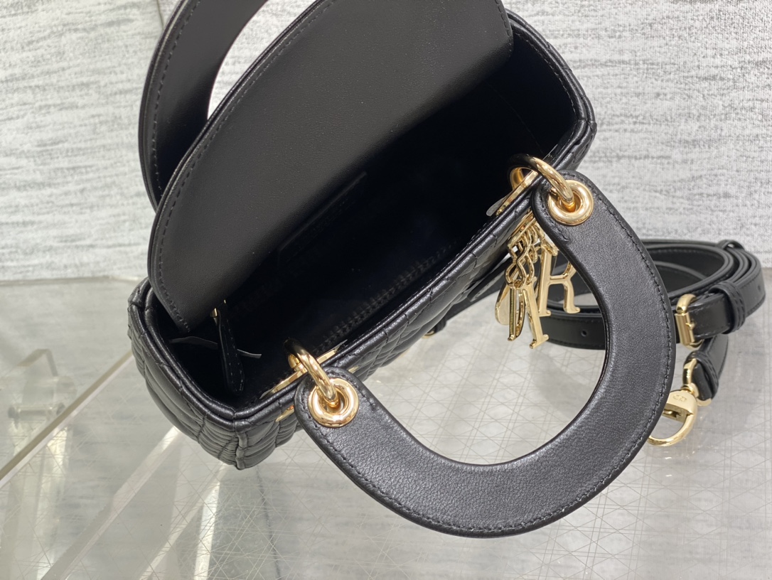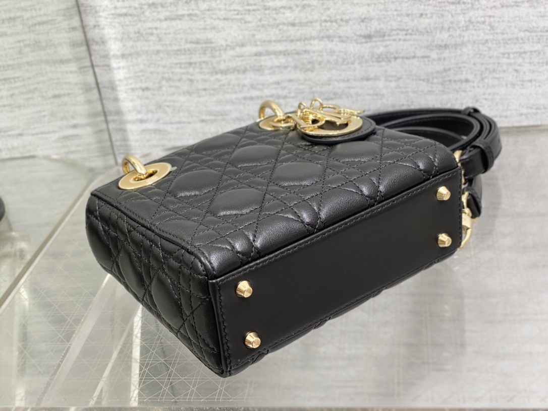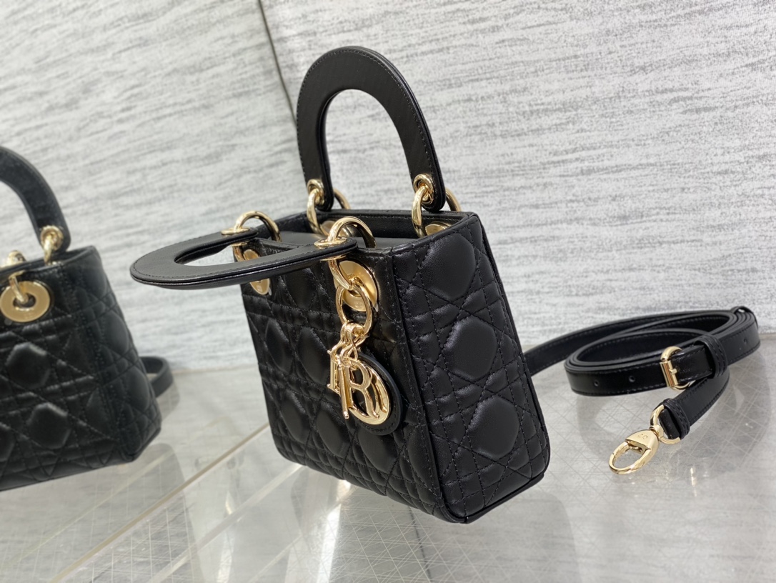 This is a replica CHRISTIAN DIOR Mini Lady Dior Bag in black. Main composition: lambskin. ,