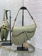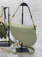 This is a replica CHRISTIAN DIOR Saddle Bag with Strap in cedar green. Main composition: grained calfskin. ,Size,