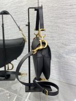 This is a replica CHRISTIAN DIOR Saddle Bag with Strap in black. Main composition: grained calfskin. ,Size,