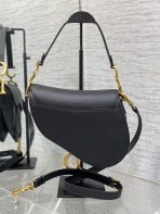 This is a replica CHRISTIAN DIOR Saddle Bag with Strap in black. Main composition: grained calfskin. ,Size,