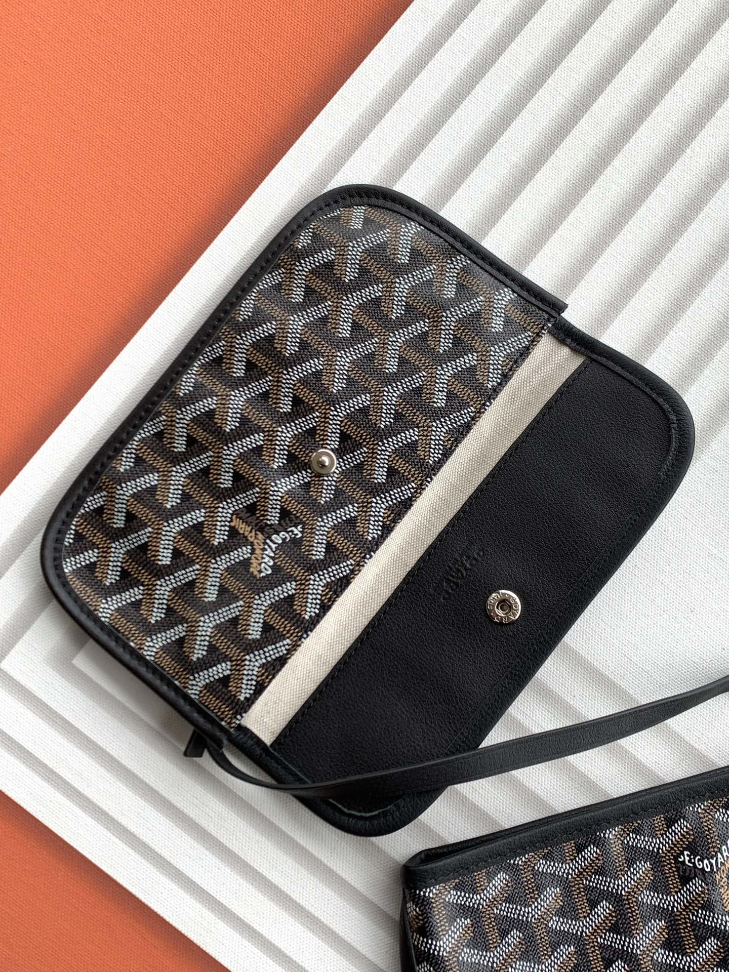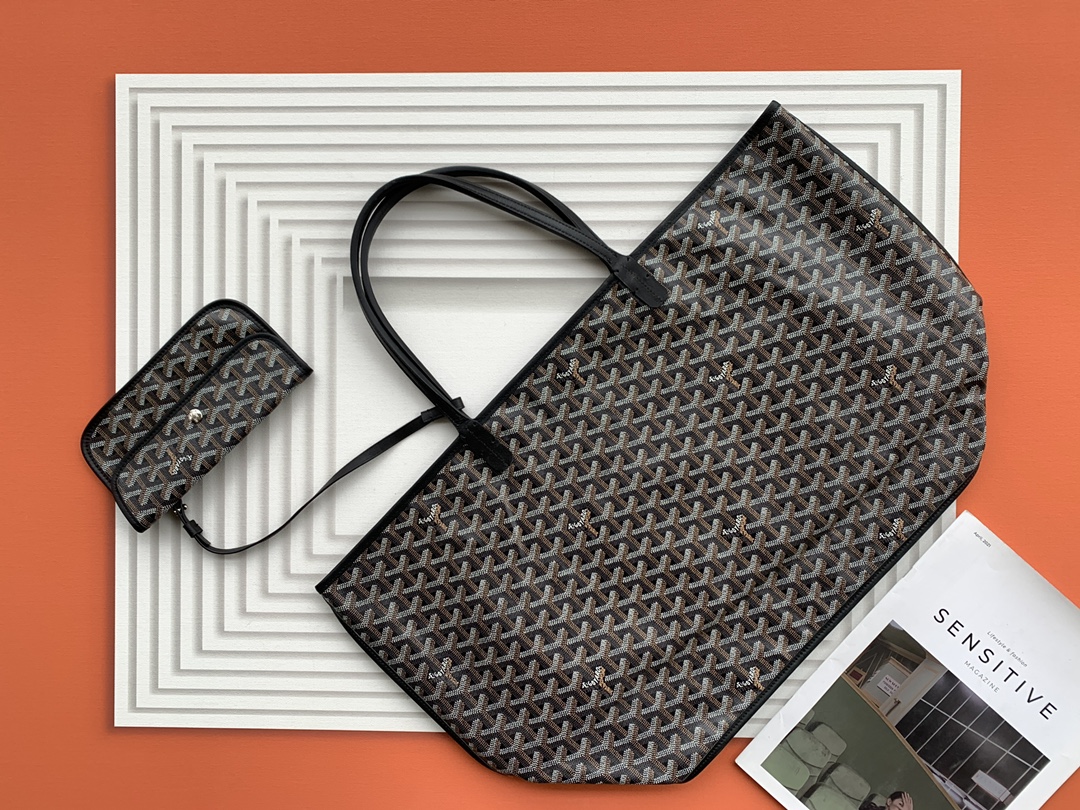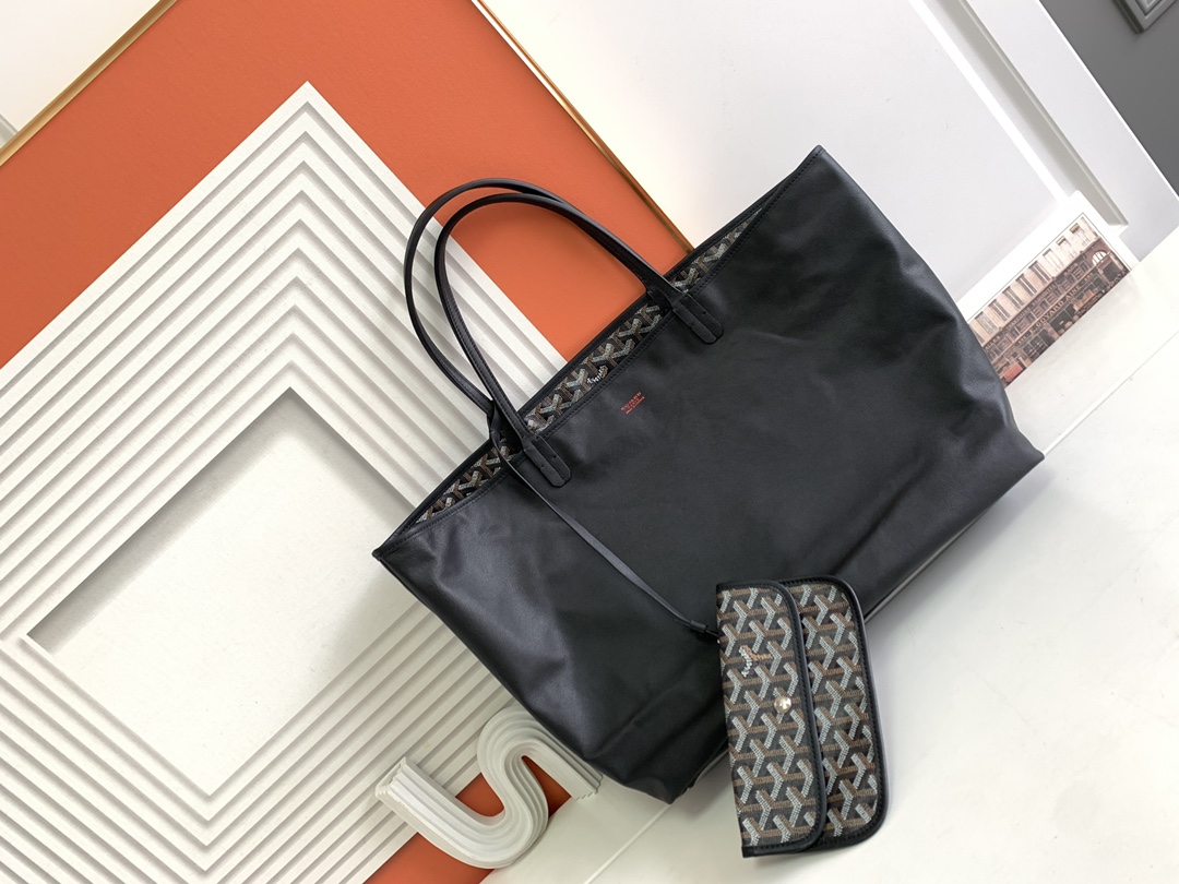 This is a replica GOYARD Anjou GM Bag in black. The Anjou GM bag is a leather variant lined with goyardine that pays homage to the iconic Saint Louis bag. The ,Size ,