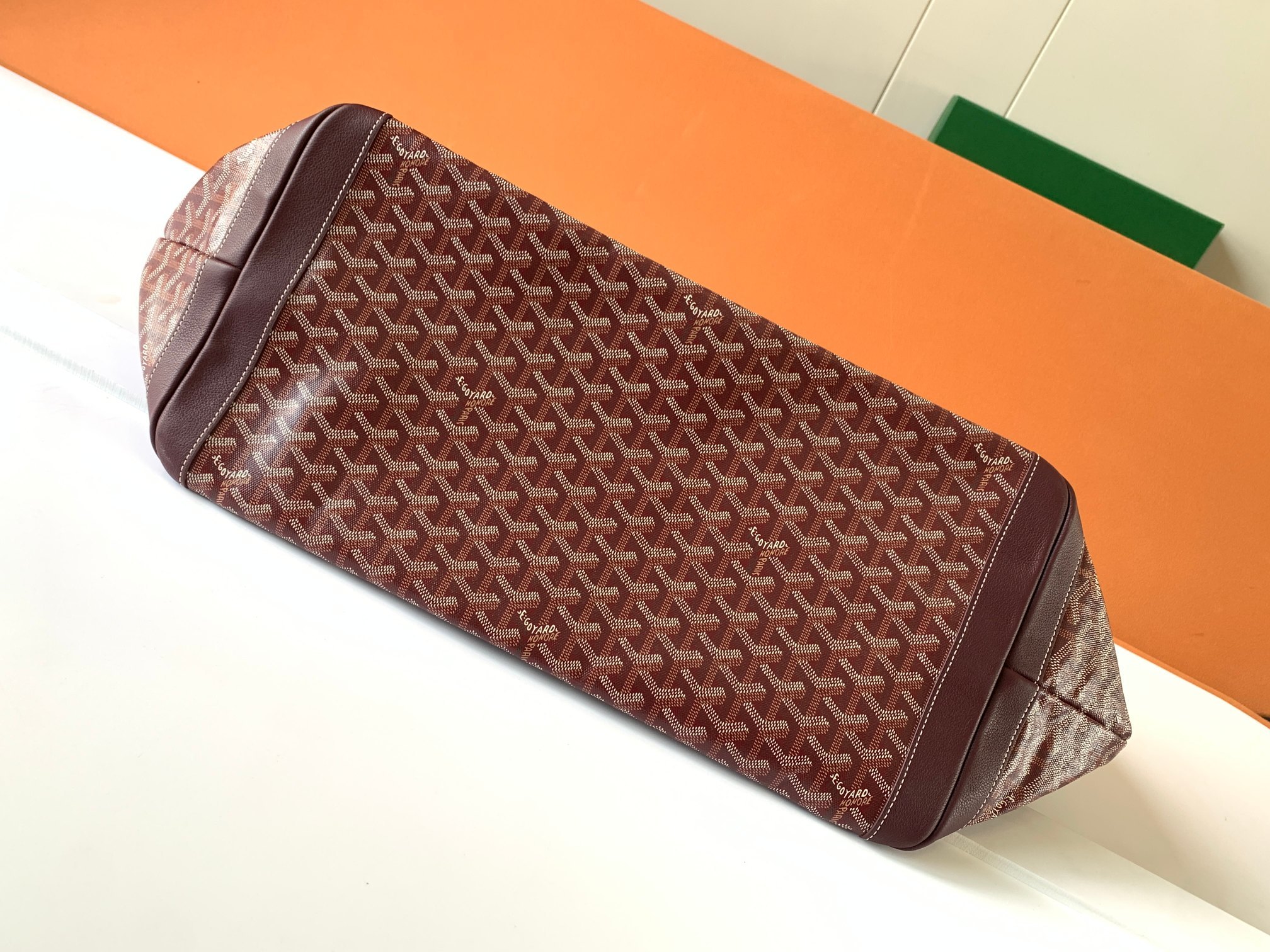 This is a replica GOYARD Artois GM Bag in burgendy. The Artois GM bag uses the aesthetic lines and codes of our Artois PM and MM bags in a travel format, ideal for a weekend or as carry-on luggage. The handles ensure comfort when worn over the shoulder. The zip closure has two lockable zips to secure the contents.,