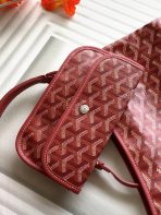 This is a replica GOYARD Bohème Hobo Bag in red. The Bohème Hobo bag epitomizes lightness, flexibility, and safety thanks to its zip closure. It is very comfortable as a shoulder bag thanks to its wide handle. It also features the emblematic removable pouch that closes with a snap fastener.,