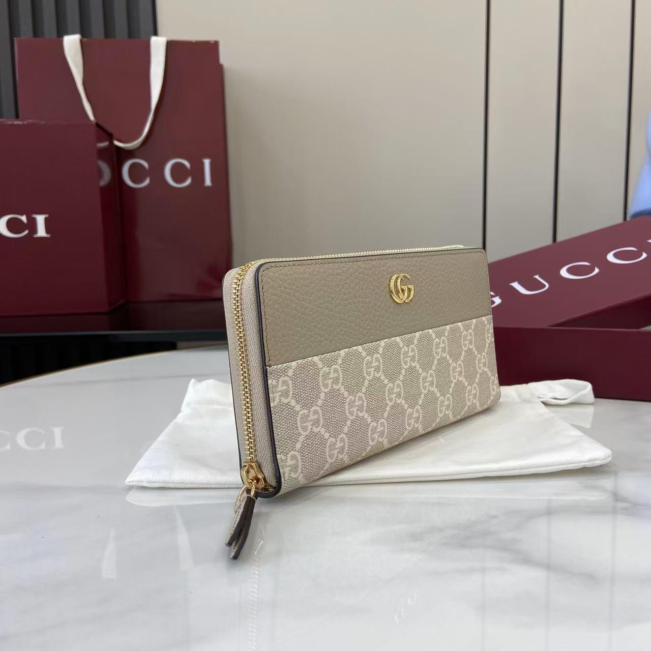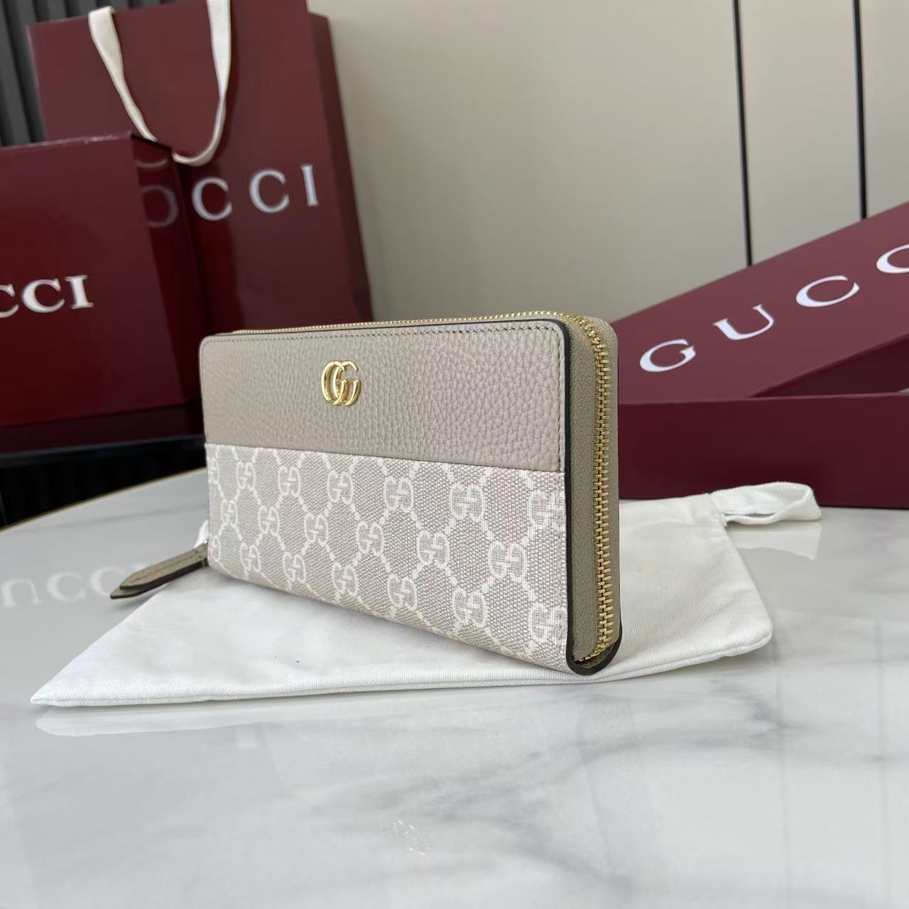 This is a replica GUCCI Bi-color GG Marmont zip around wallet 456117. ,