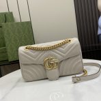 This is a replica GUCCI GG Marmont small shoulder bag in light grey leather. Light gold-toned hardware. ,Size: Small,