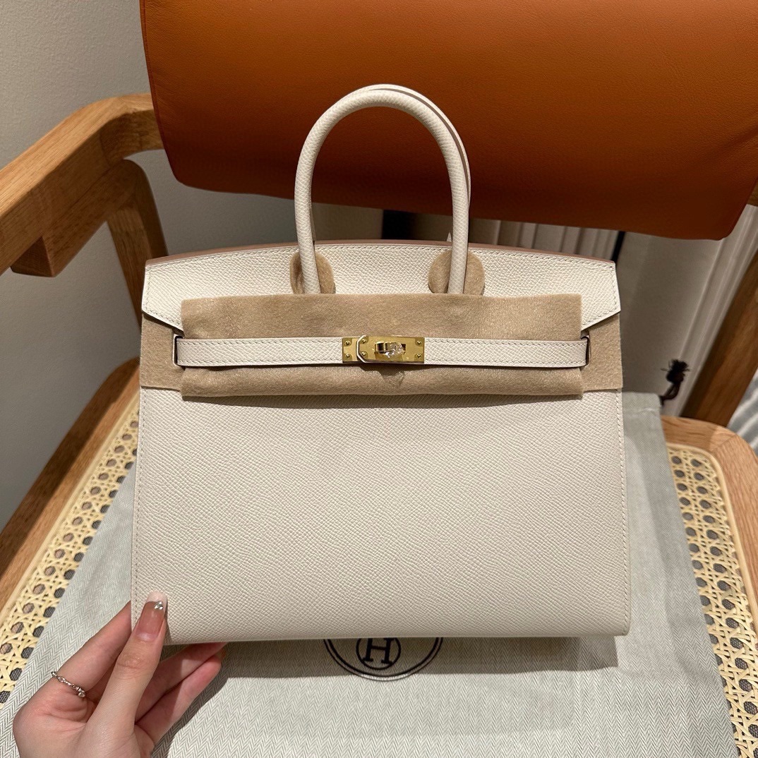 This is a replica ###Hermès Birkin 25 Craie Epsom Gold Hardware. ###