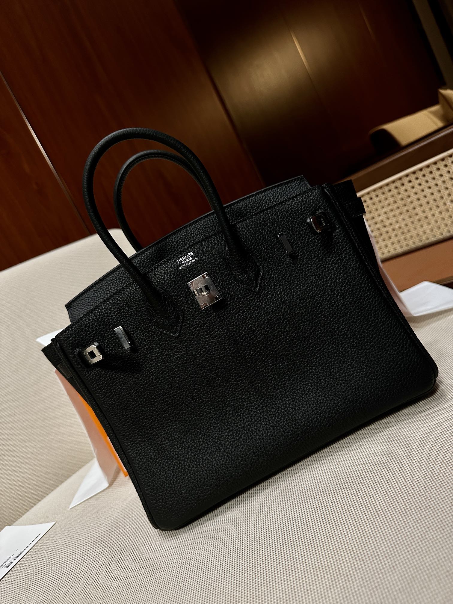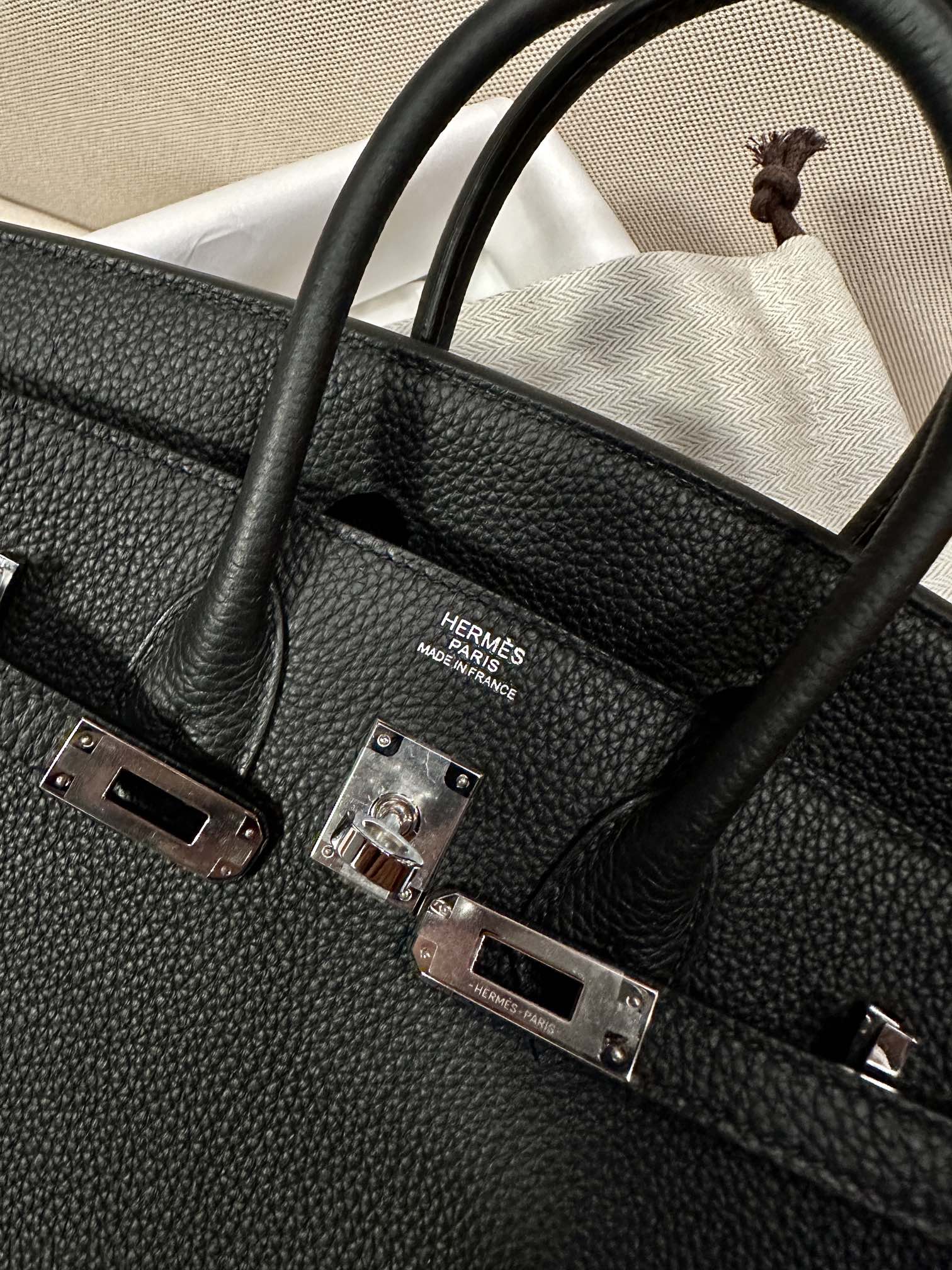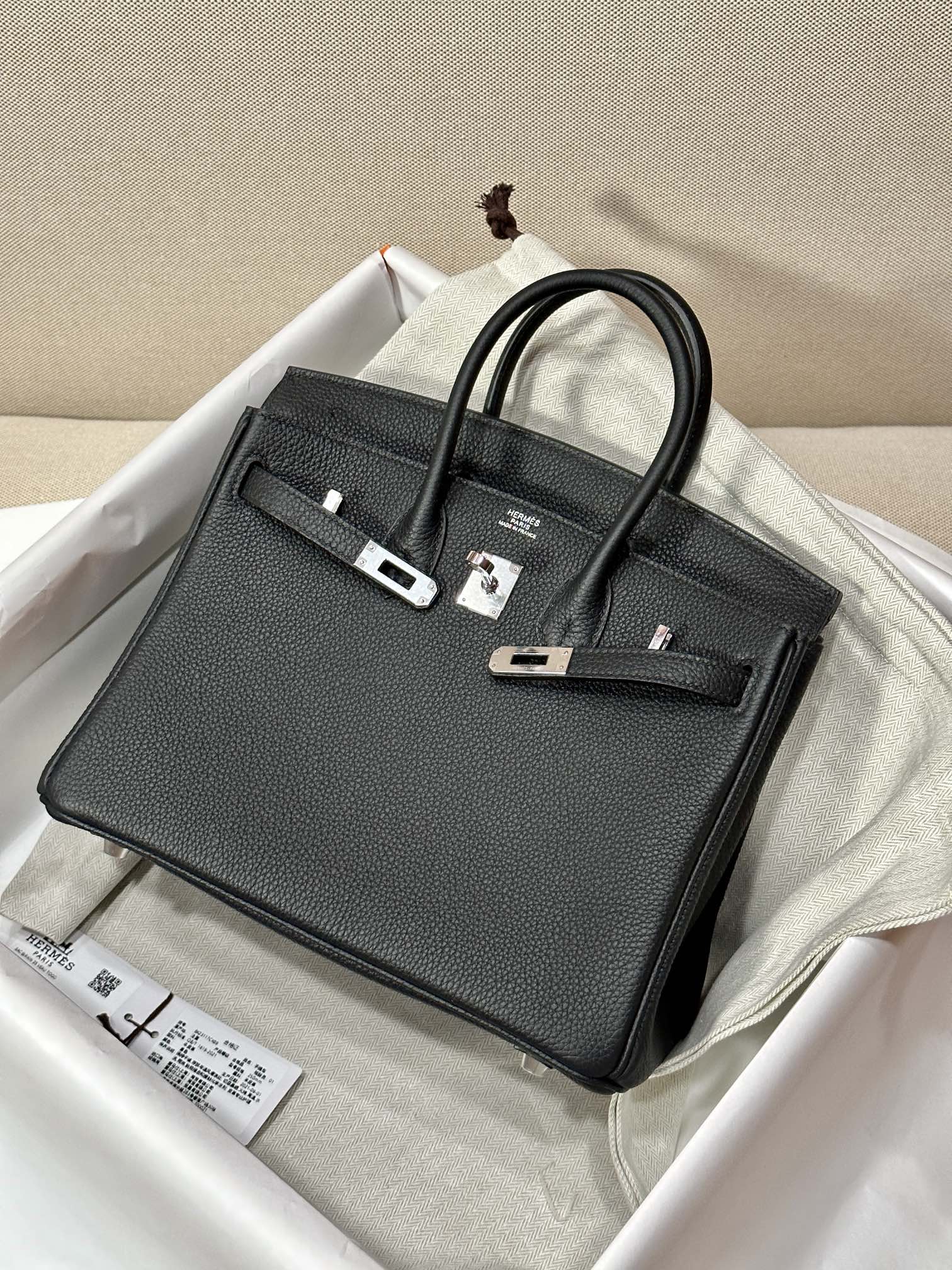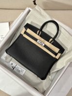 This is a replica ###Hermès Birkin 25 Noir Togo Palladium Hardware. ###