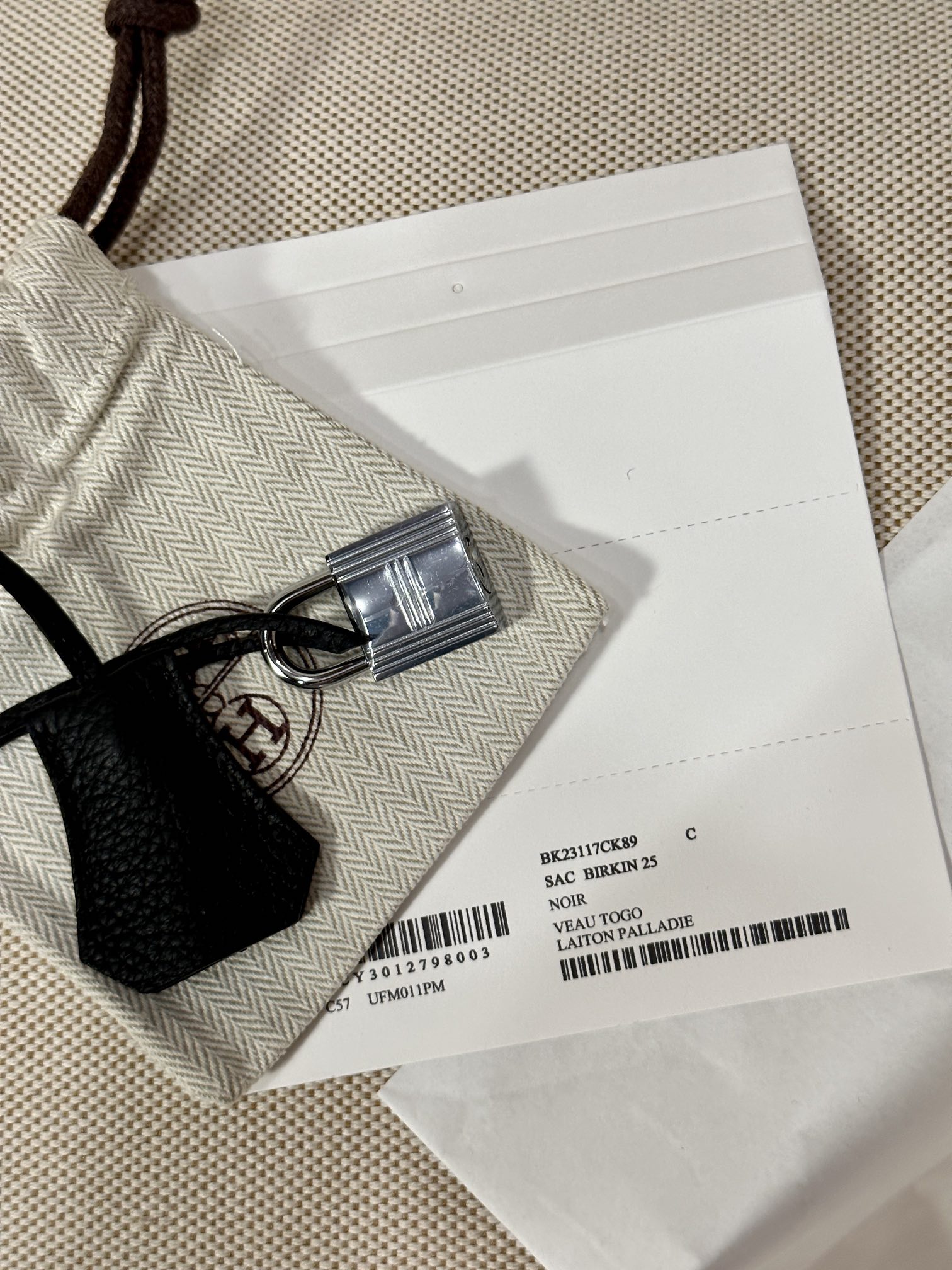 Hermès Birkin 25 Noir Togo Palladium Hardware
