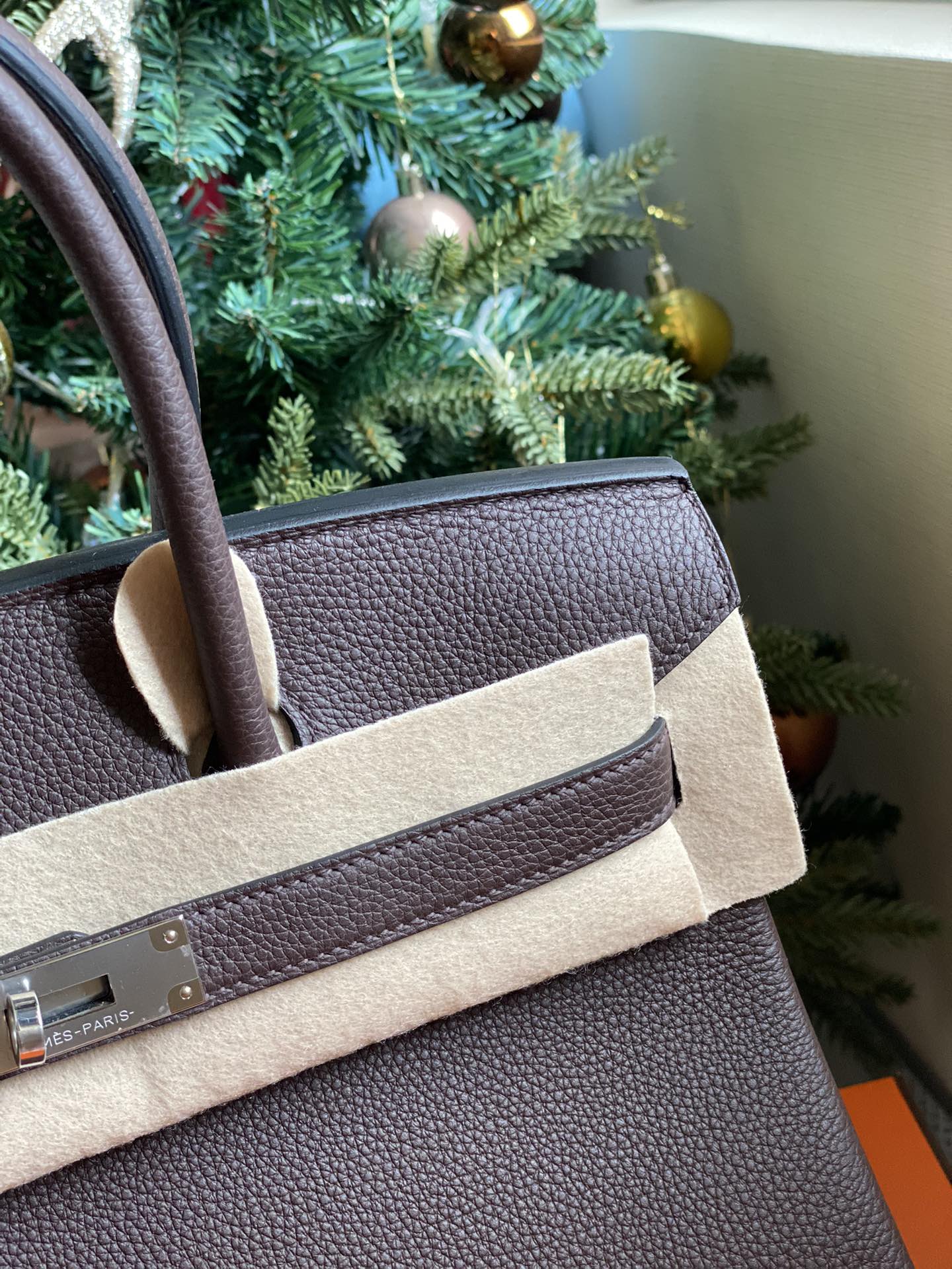 This is a replica ###Hermès Birkin 30 Etoupe Togo Palladium Hardware. ###