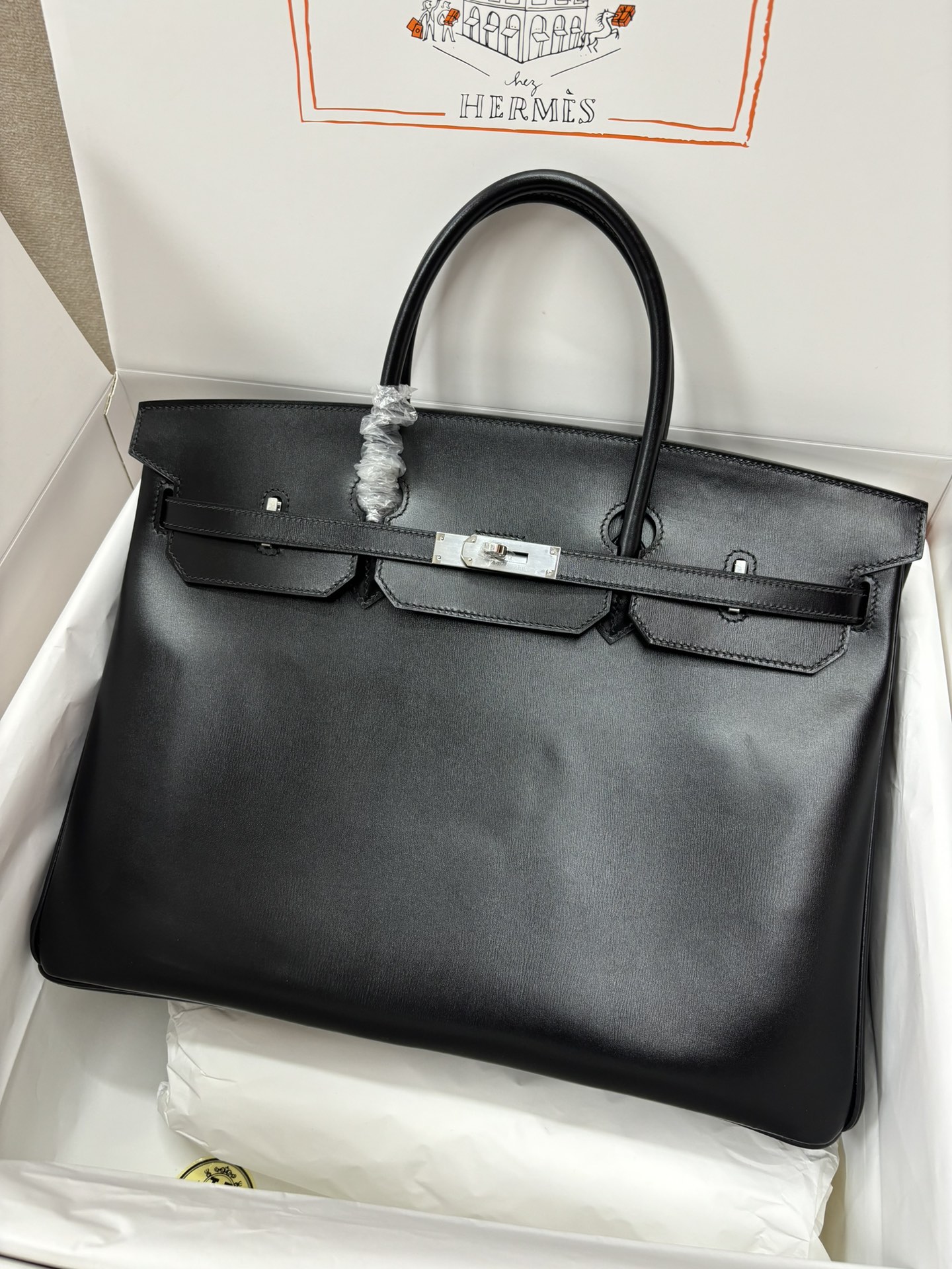This is a replica Hermès Birkin 35 Black Box Palladium Hardware###. ###
