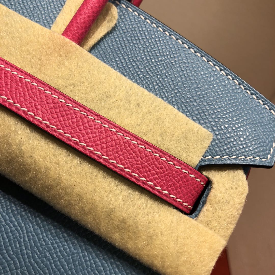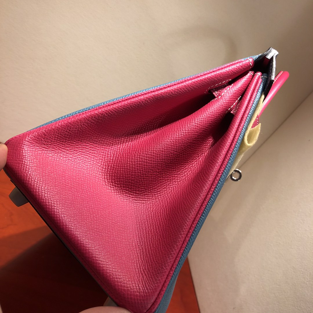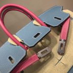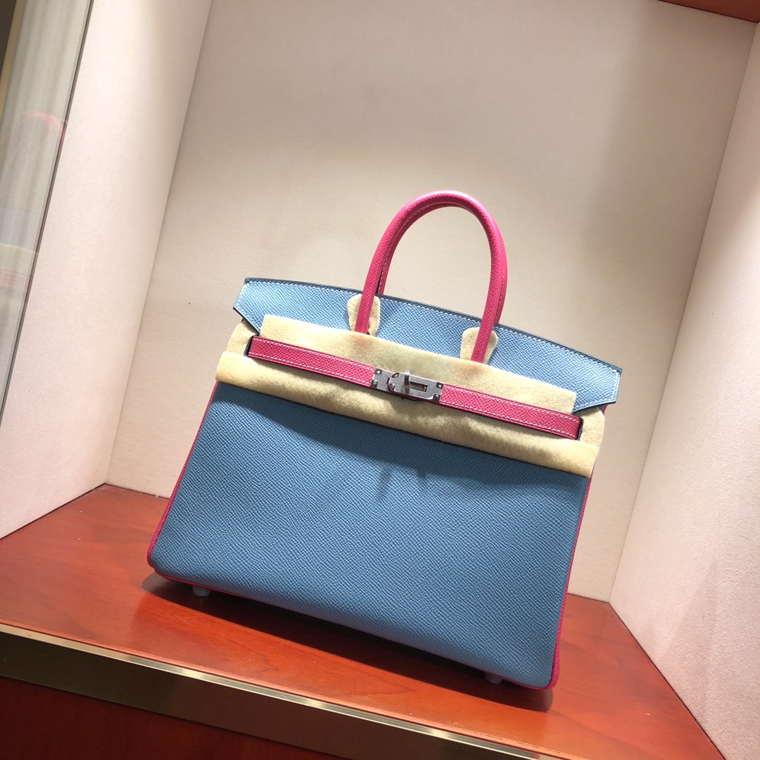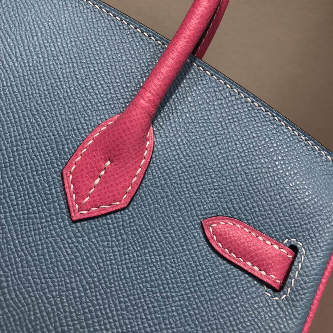 This is a replica ###Hermès Birkin 35 Blue Jean and Rose Tyrien Epsom Leather and Palladium Hardware. ###