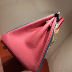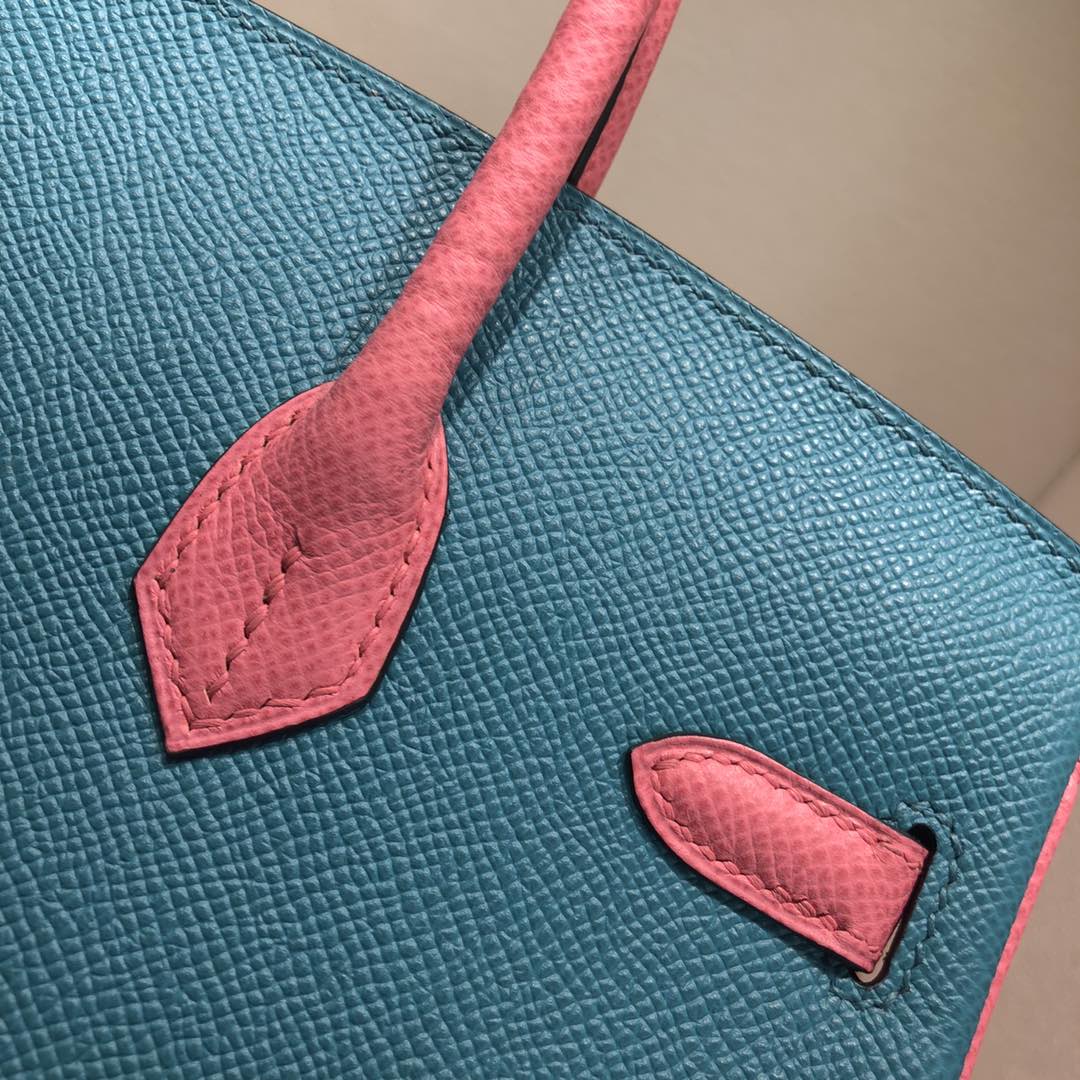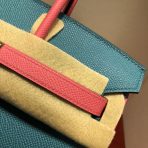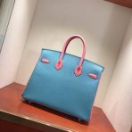 This is a replica ###Hermès Birkin 35 Blue Paon and Rose Azalee Epsom Leather and Gold Hardware. ###
