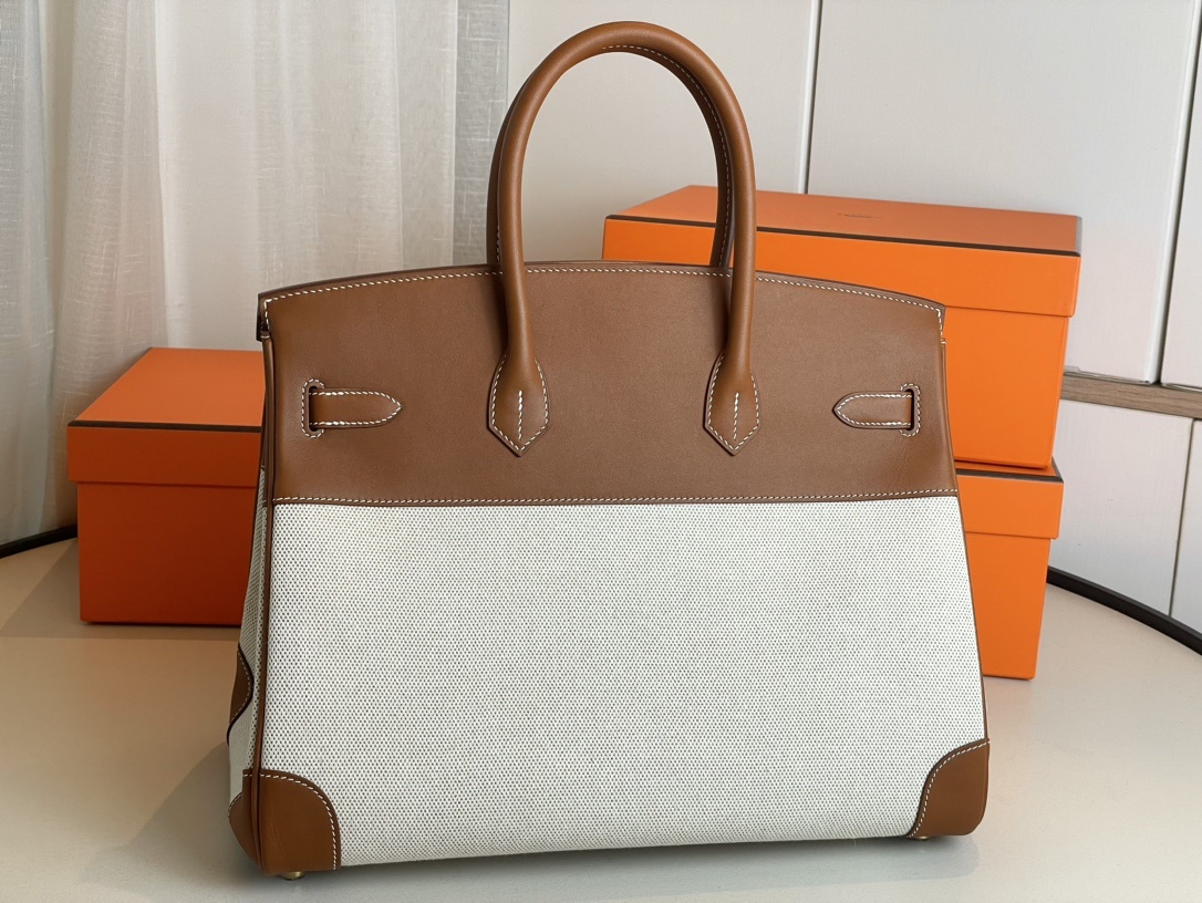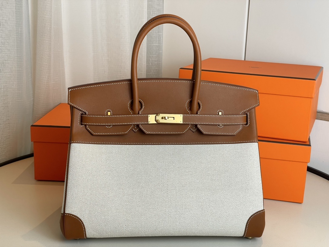 This is a replica Hermès Birkin 35 Gold Togo and Craie Gold Hardware###. ###