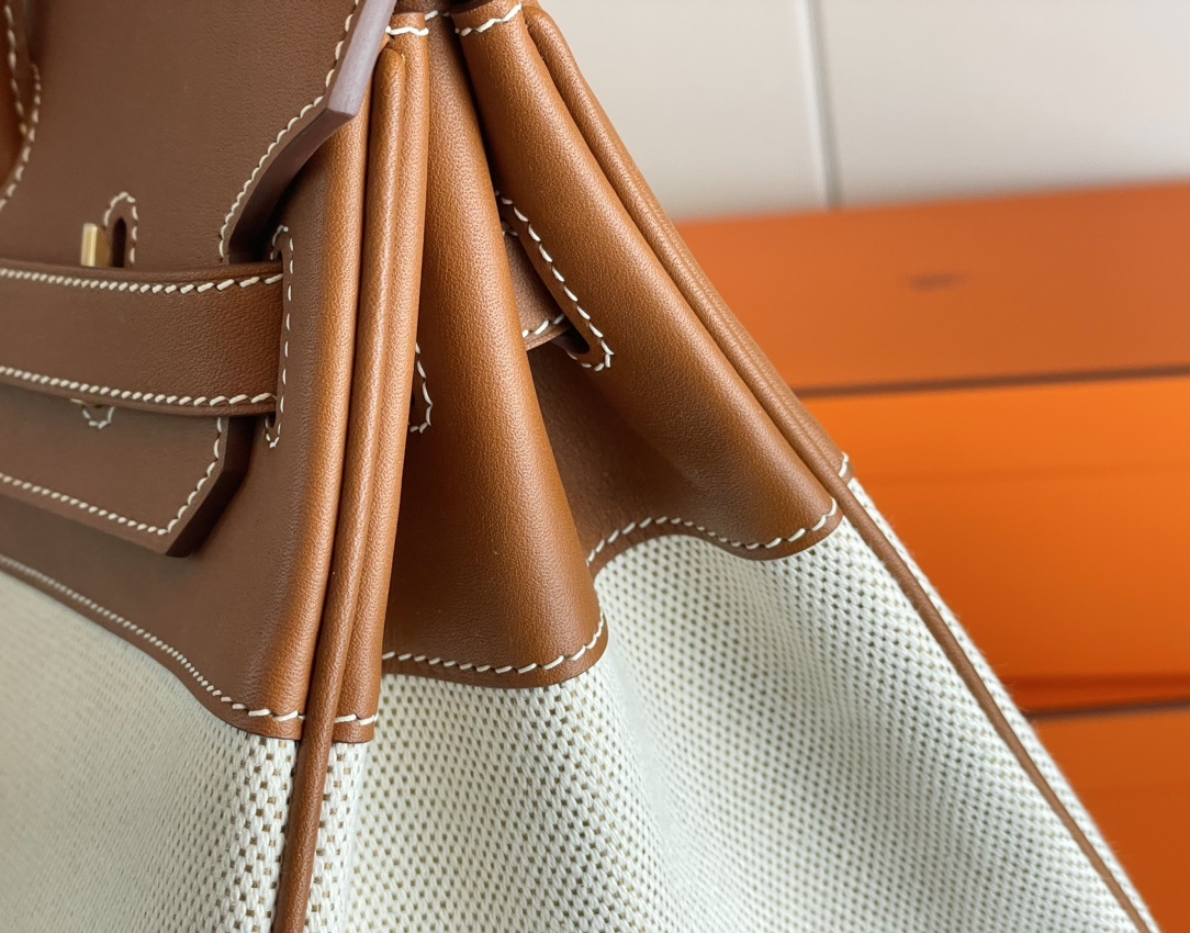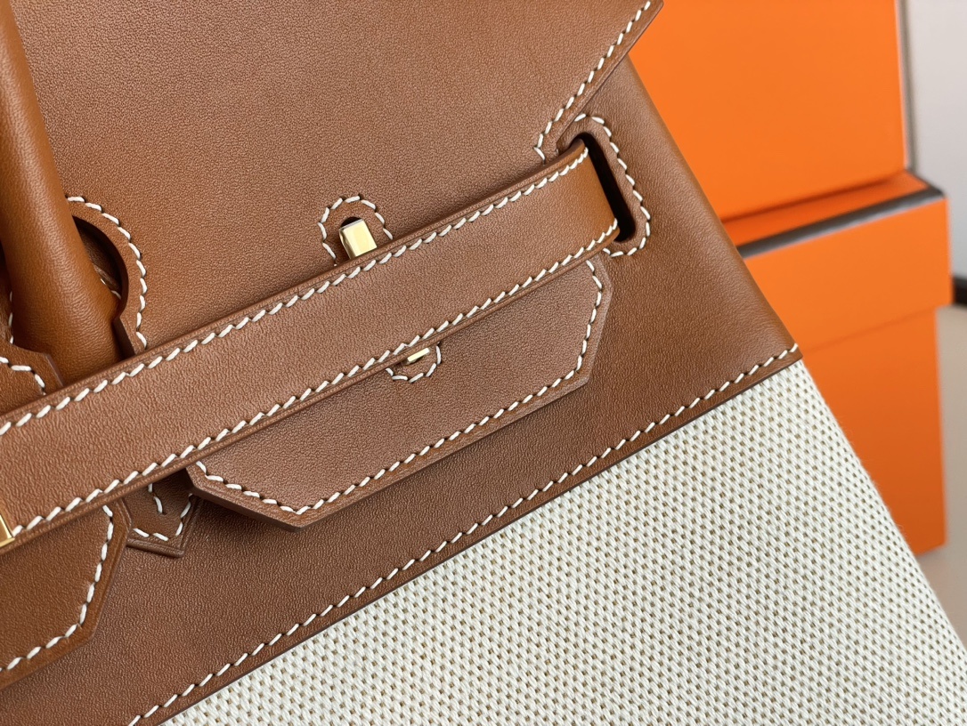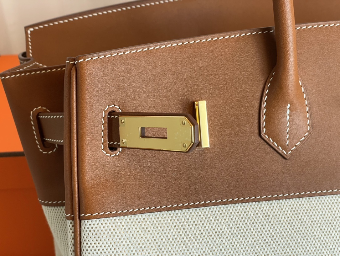 ###This Birkin is in Gold togo leather and Craie canvas###