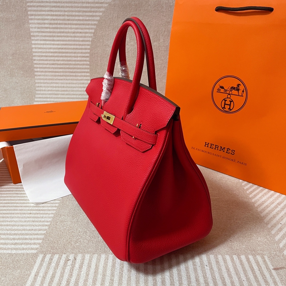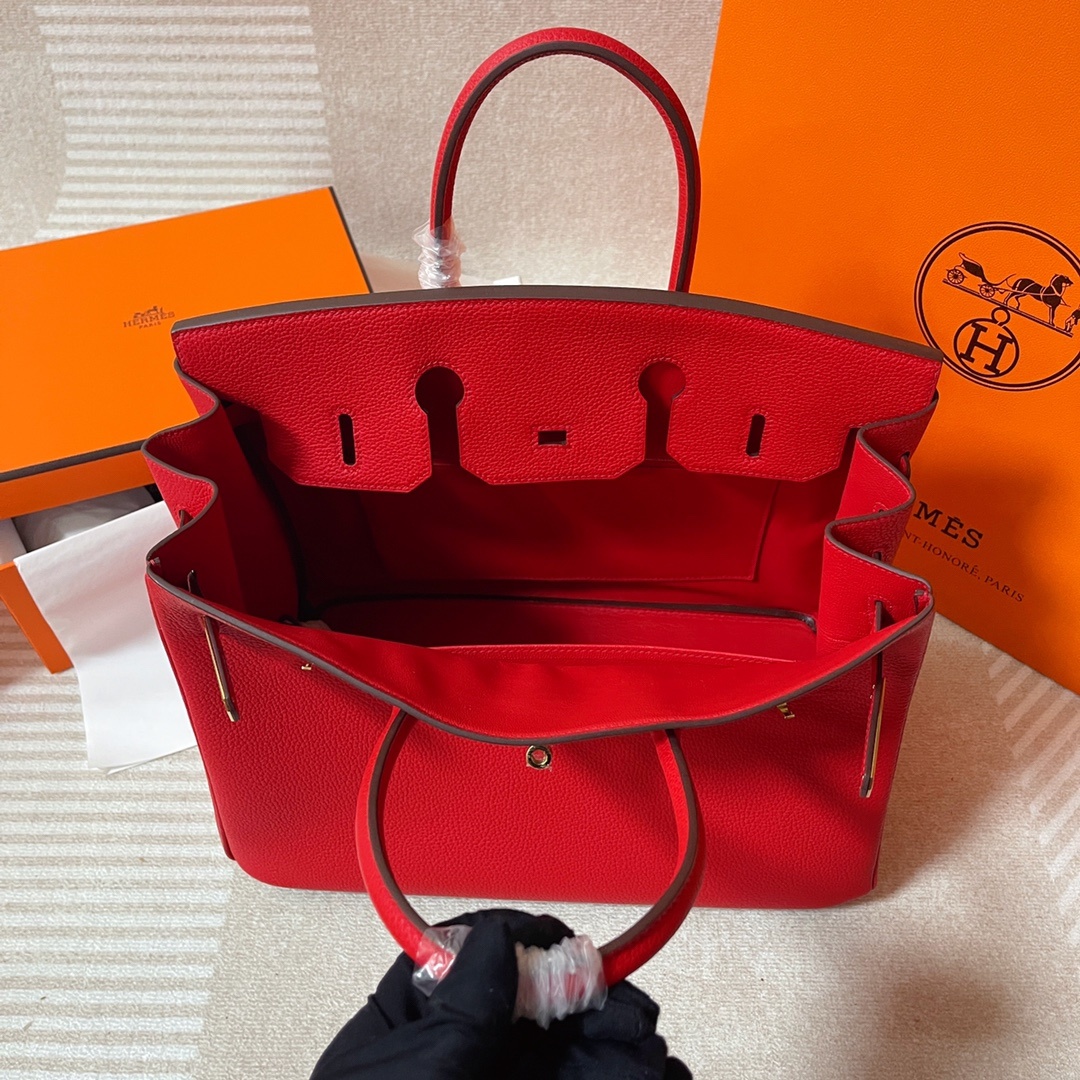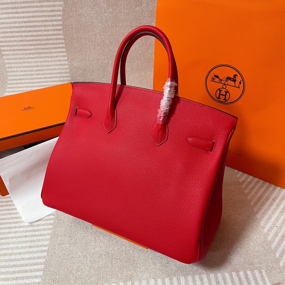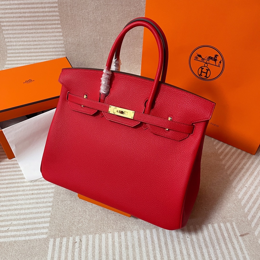 This is a replica Hermès Birkin 35 Rouge Togo Gold Hardware###. ###