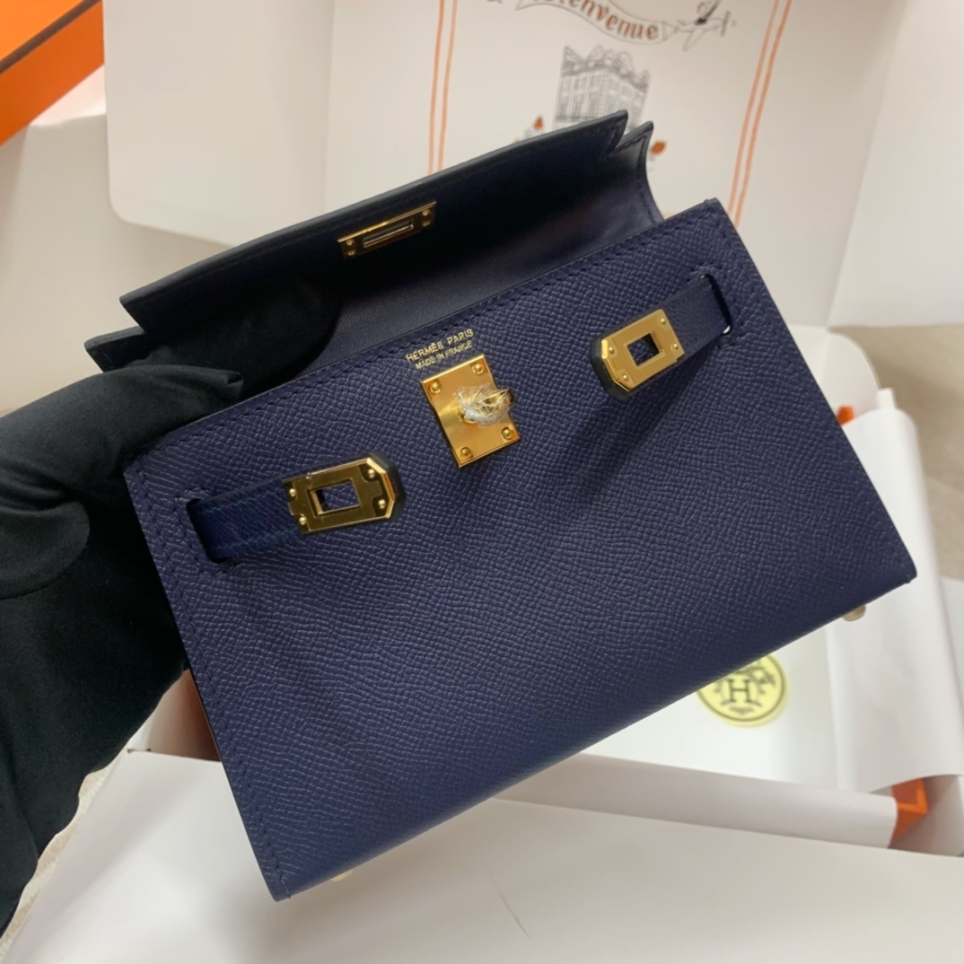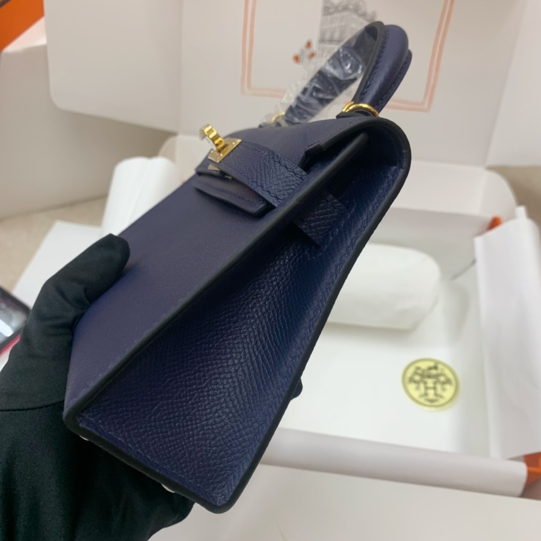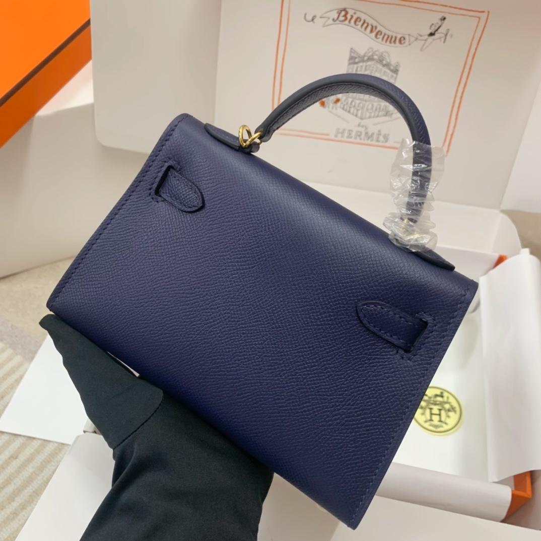This is a replica ###Hermès Kelly Sellier 20 Bleu Saphir Epsom Leather Gold Hardware. ###
