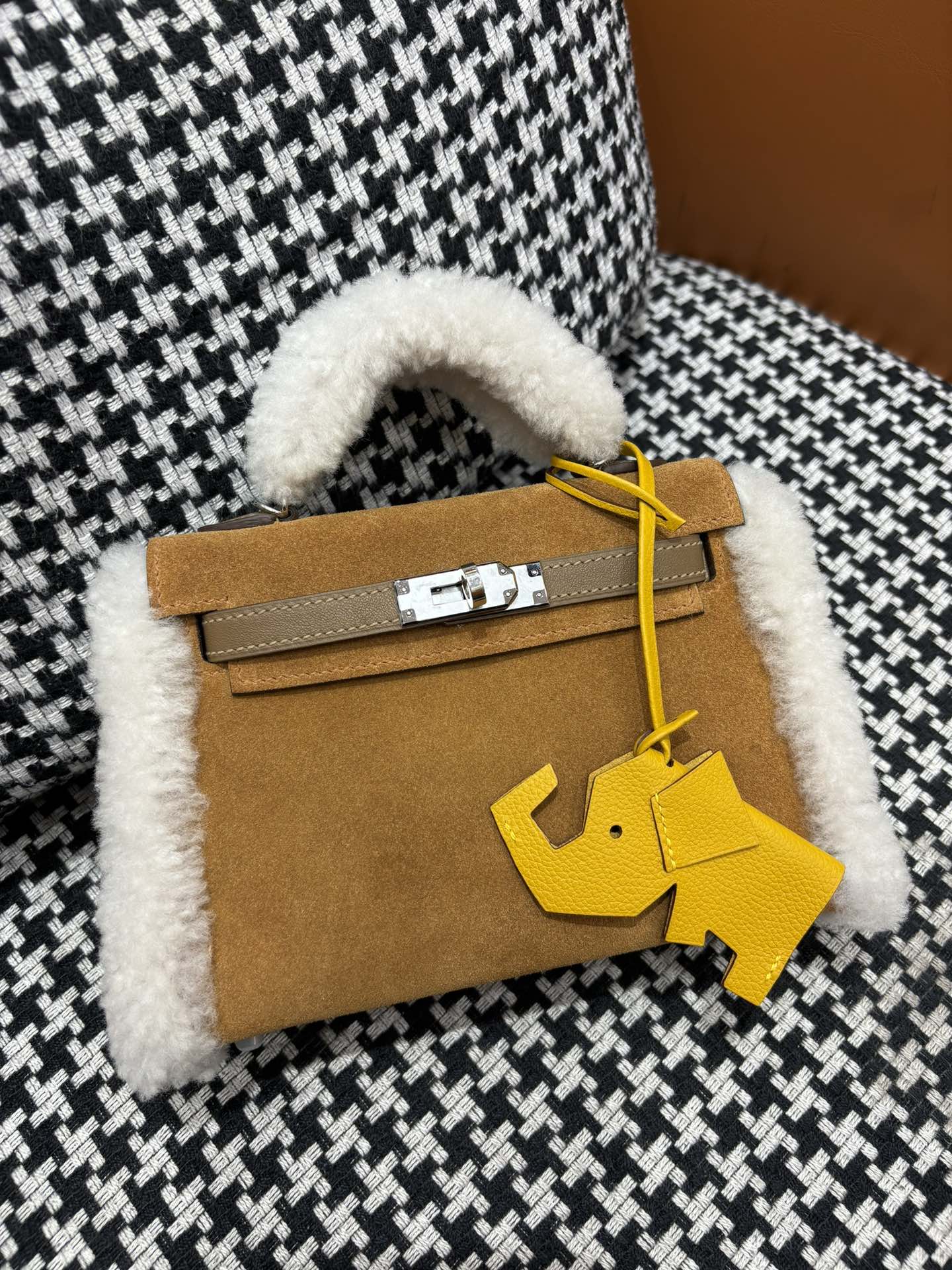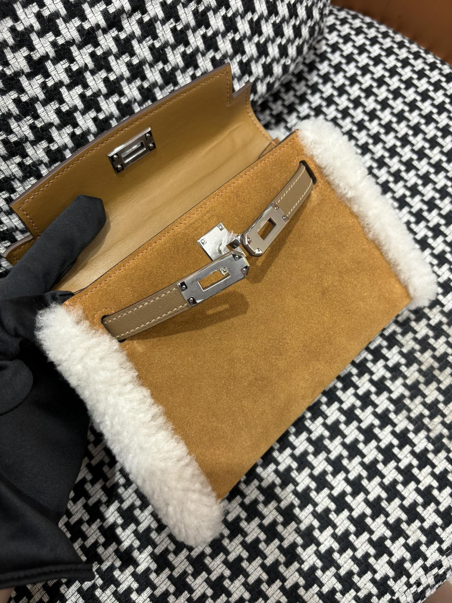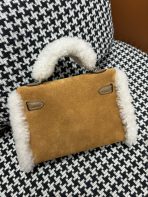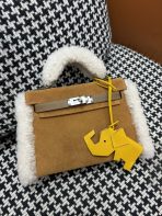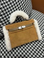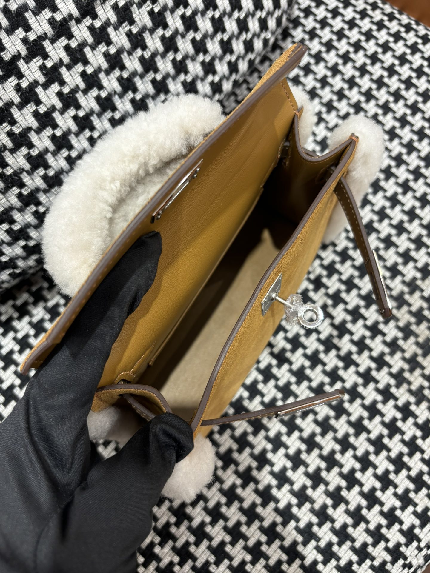 This is a replica ###Hermès Kelly Sellier 20 Teddy Pluch and Gold Barenia Leather Palladium Hardware. ###