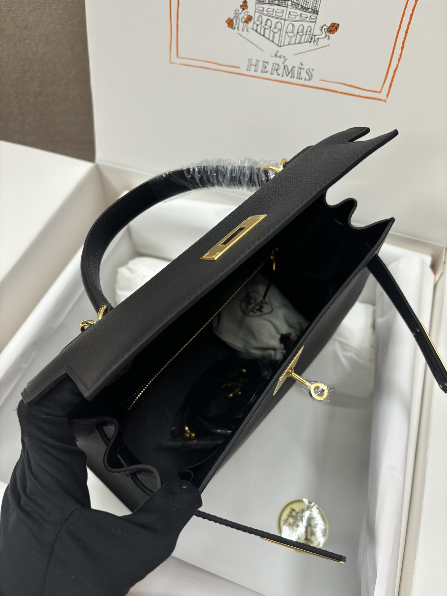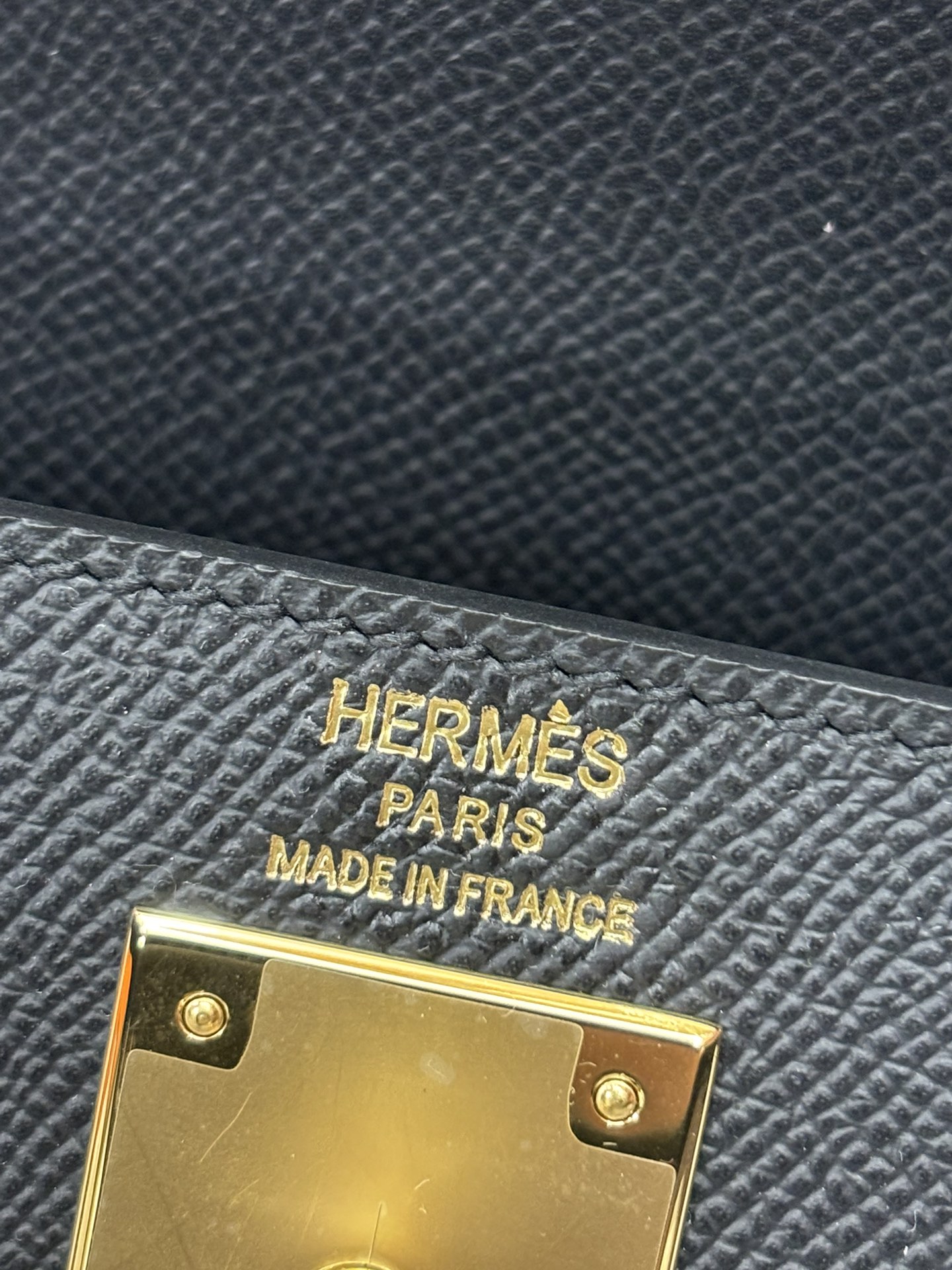 This is a replica ###Hermès Kelly Sellier 25 Black Epsom Gold Hardware. ###