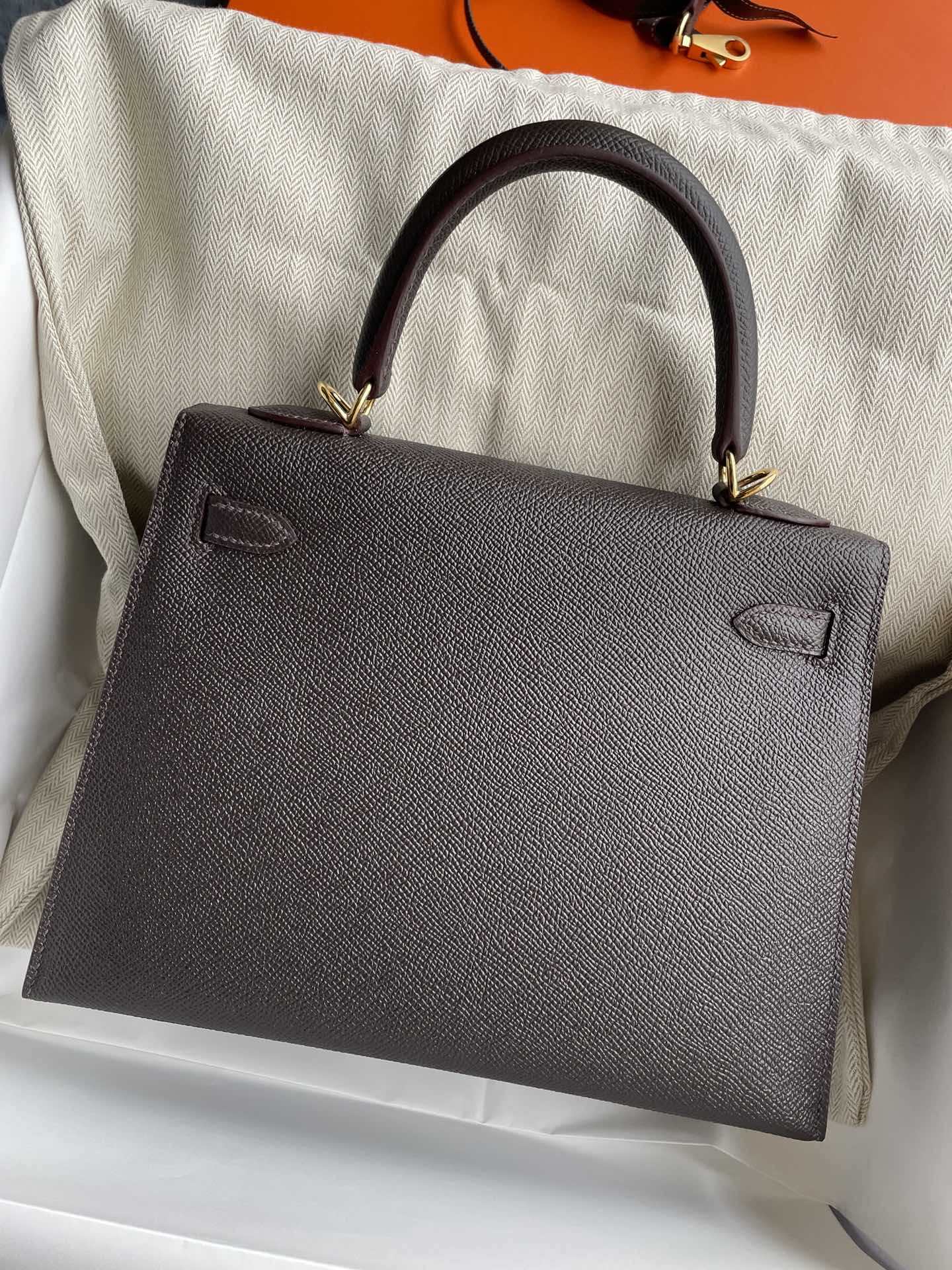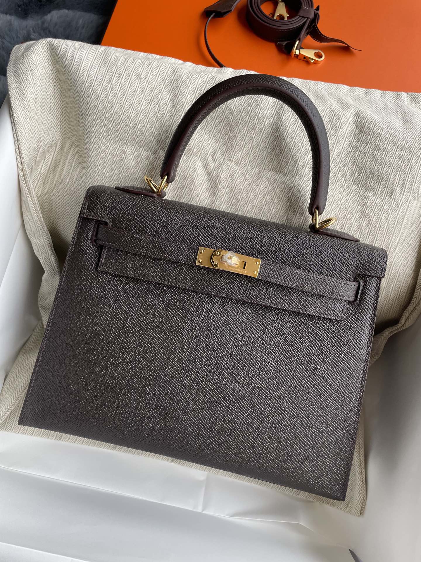 This is a replica ###Hermès Kelly Sellier 25 Chocolate Epsom Gold Hardware. ###