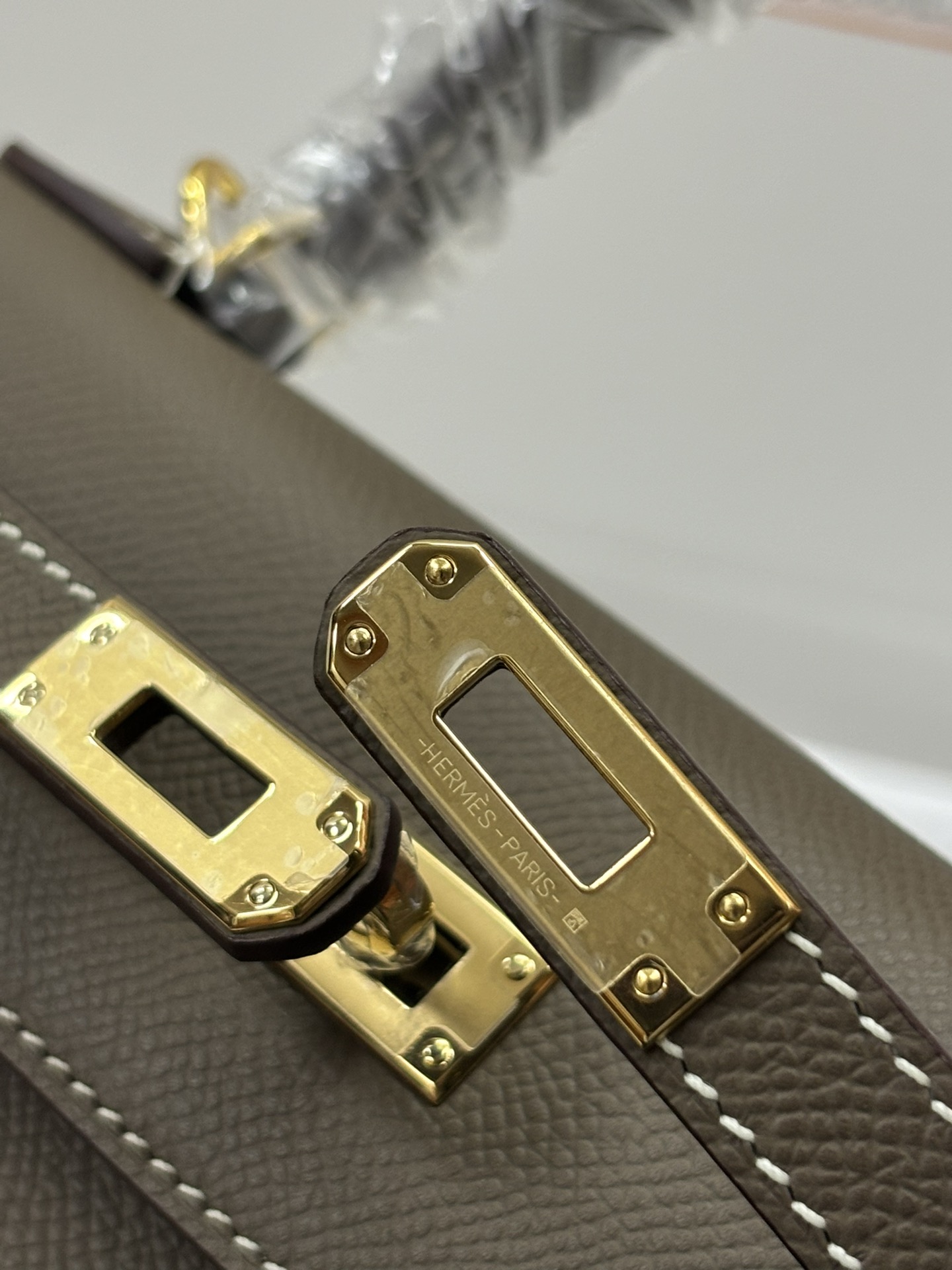 This is a replica ###Hermès Kelly Sellier 28 Etoupe Epsom Leather Gold Hardware. ###