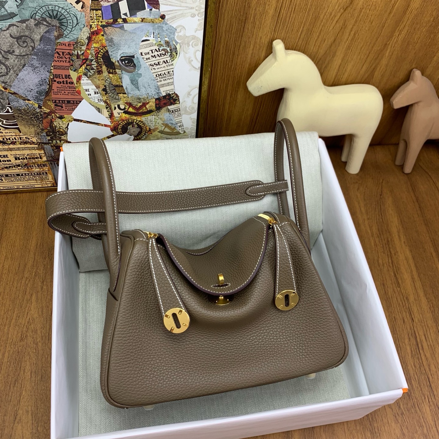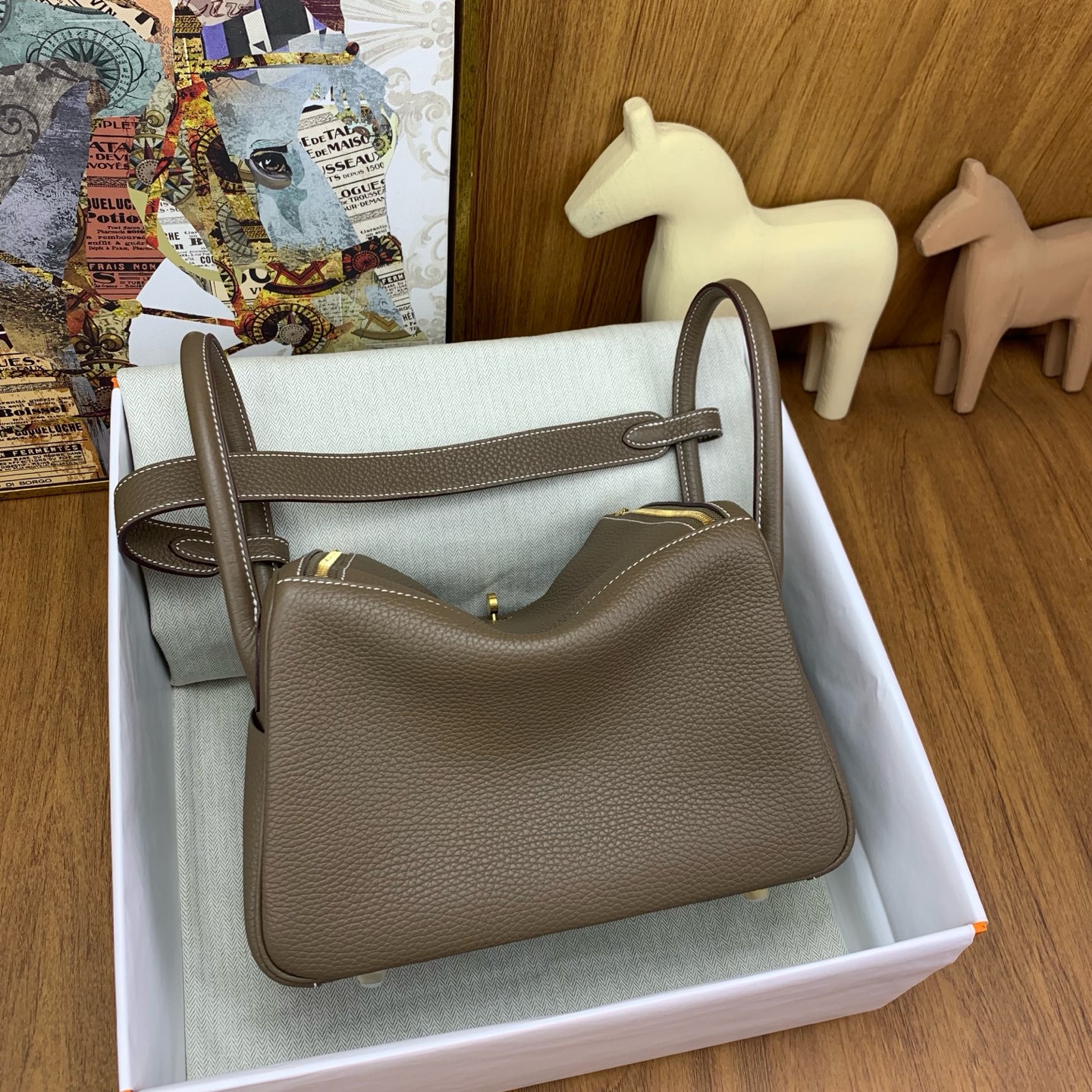 This is a replica ###Hermès Lindy 26 Etoupe Clemence Gold Hardware. ###