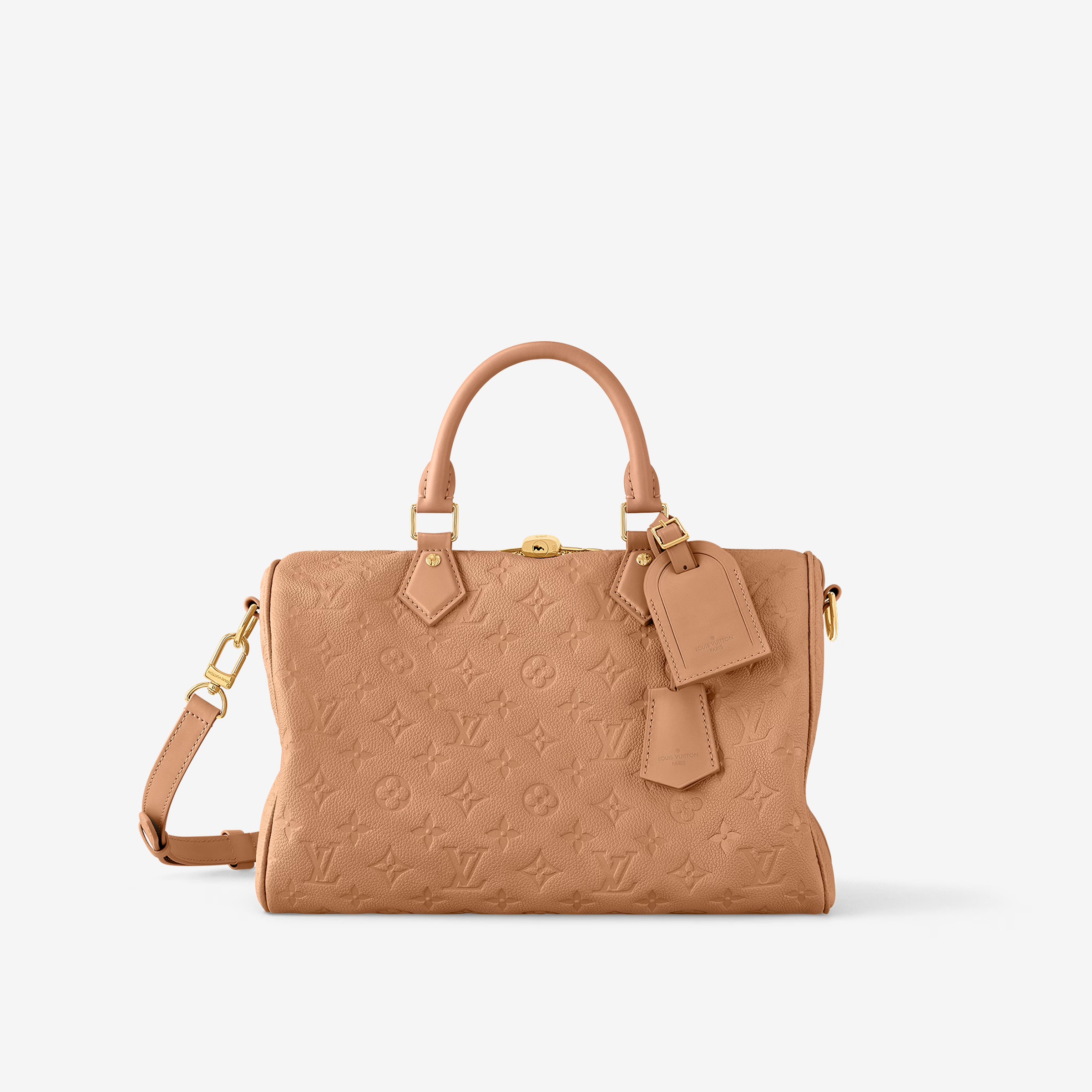 This is a replica LOUIS VUITTON M11323 Speedy Soft 30. ,11.8 x 8.3 x 6.7 inches ,Arizona Beige,Supple monogram Empreinte cowhide leather,1 removable and adjustable leather strap,Cowhide-leather trim,Suede calfskin lining,Gold-color hardware,Inside zipped pocket,Padlock,Name tag,Fits: smartphone, compact wallet, keys,Strap:Removable, adjustable,Strap drop:16.5 inches,Strap drop max:19.7 inches,Handle:Double