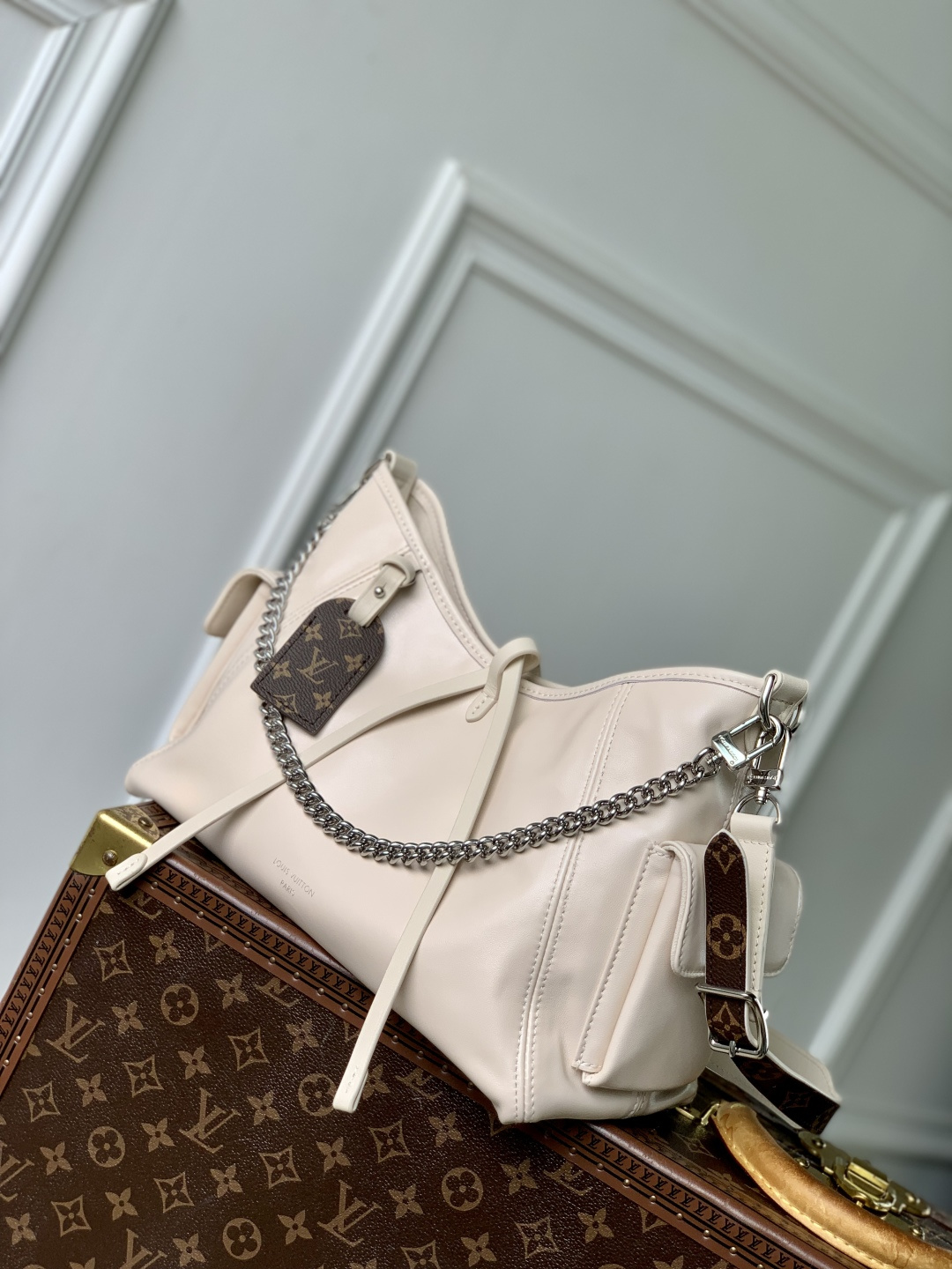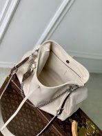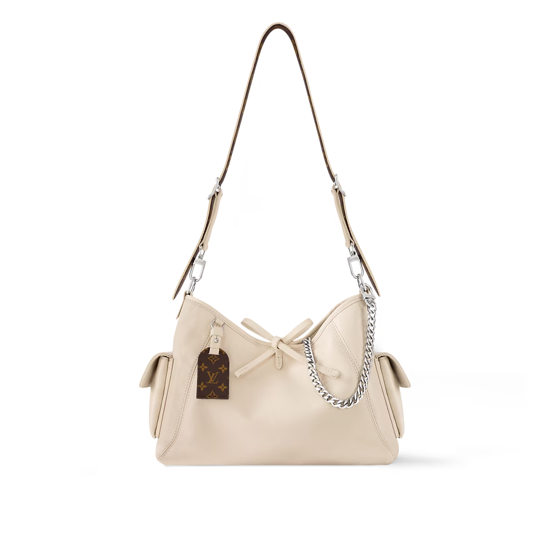 This is a replica LOUIS VUITTON M12919 CarryAll Cargo Vibe PM. ,33.5 x 23 x 15 cm ,Vanilla,Lambskin leather,Cowhide leather trim,Microfibre lining,Silver-colour hardware,Leather lace and magnetic closure,1 zipped inside pocket,Name tag,1 inside flat pocket,Fits 6.7-inch smartphone, Zippy wallet, tissues, lipstick, earphones, sunglasses, keys,Weight: 0.7 kg,Strap: Removable, adjustable,Strap Drop: 32.0 cm,Strap Drop Max: 48.0 cm,Chain: Removable,Chain Drop: 24.0 cm