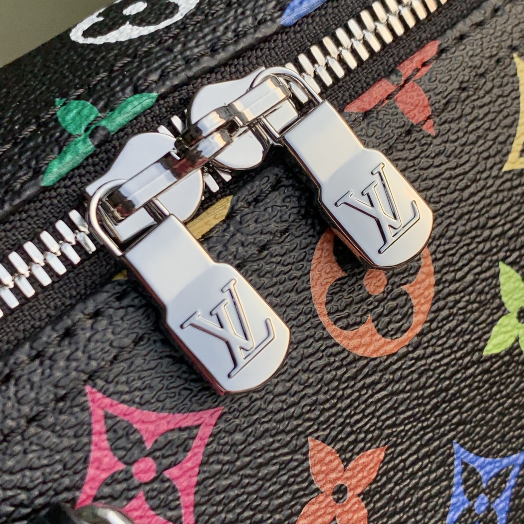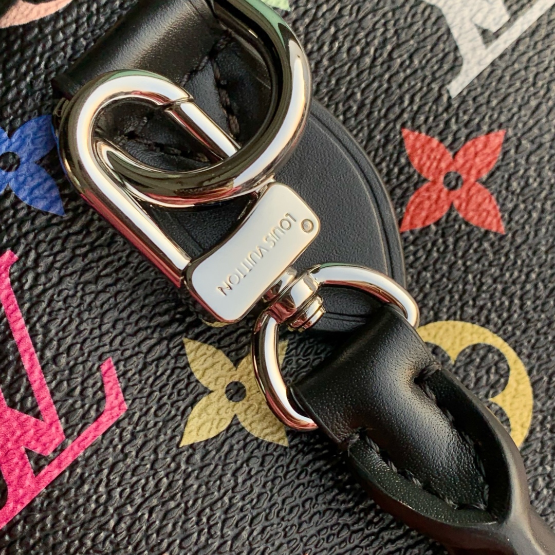 This is a replica LOUIS VUITTON M13257 ,LV x TM Speedy Soft 30,11.8 x 8.3 x 6.7 inches,(Length x Height x Width),Multicolored,Monogram coated canvas,Calf-leather trim,Textile lining,Silver-toned hardware,Double zipper closure,Inside pocket,Keybell,Padlock,Fits: smartphone, keys, earphones, Zippy wallet,Strap:Removable, not adjustable,Strap drop:9.4 inches,Handle:Double