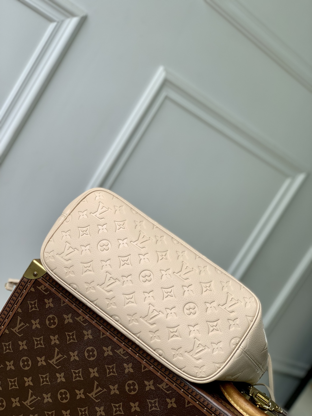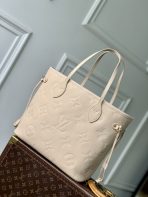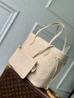 This is a replica LOUIS VUITTON M14319 Neverfull MM Tote Bag. ,31 x 28 x 14 cm ,Sand,Grained cowhide leather,Grained cowhide leather trim,Microfibre lining,Gold-colour hardware,1 hook closure,1 inside removable zipped pocket,4 side laces,Fits 13-inch laptop, 13-inch tablet, smartphone, keys, Zippy long wallet, earphones, lipstick,Handle: Single x2