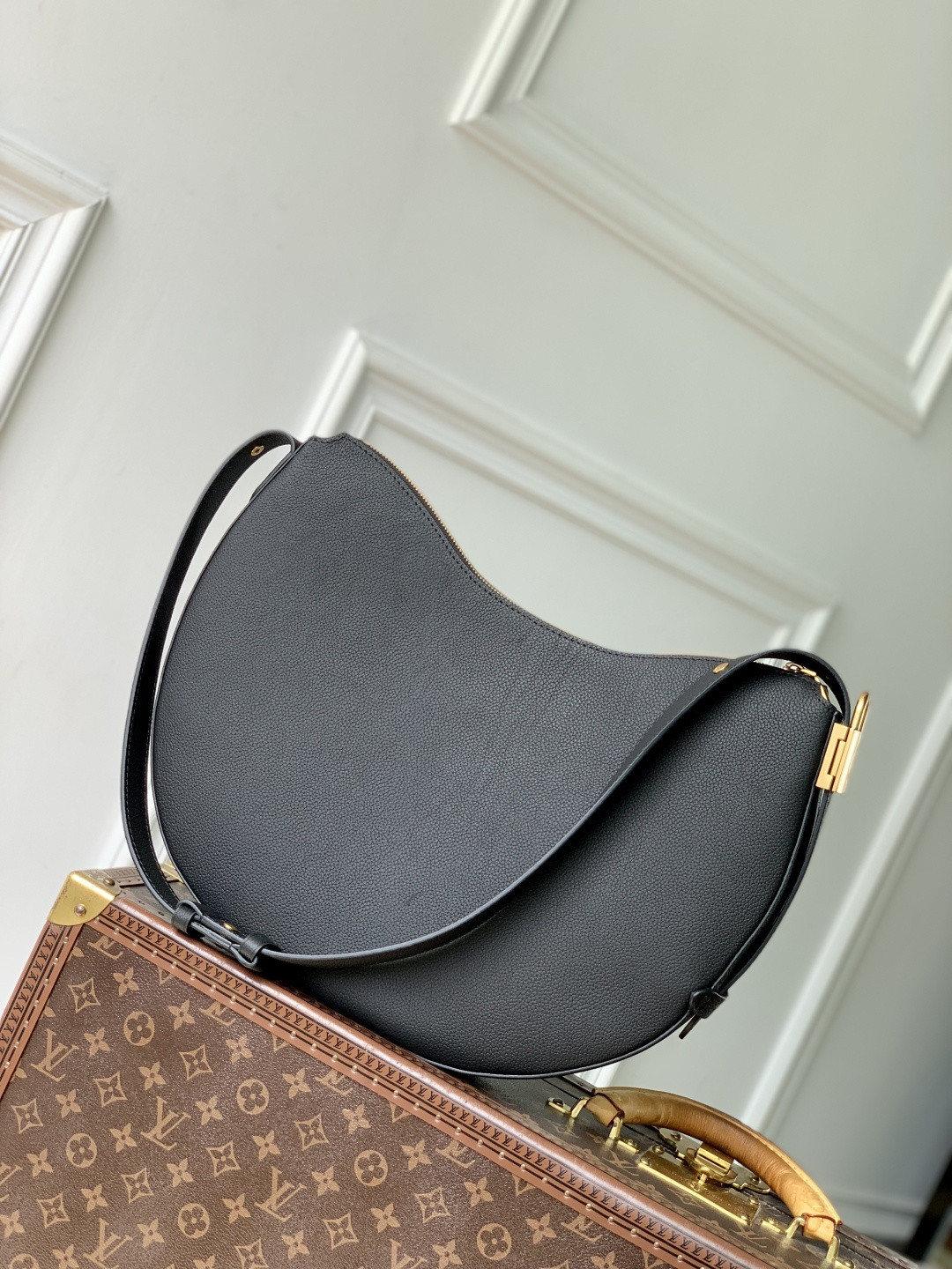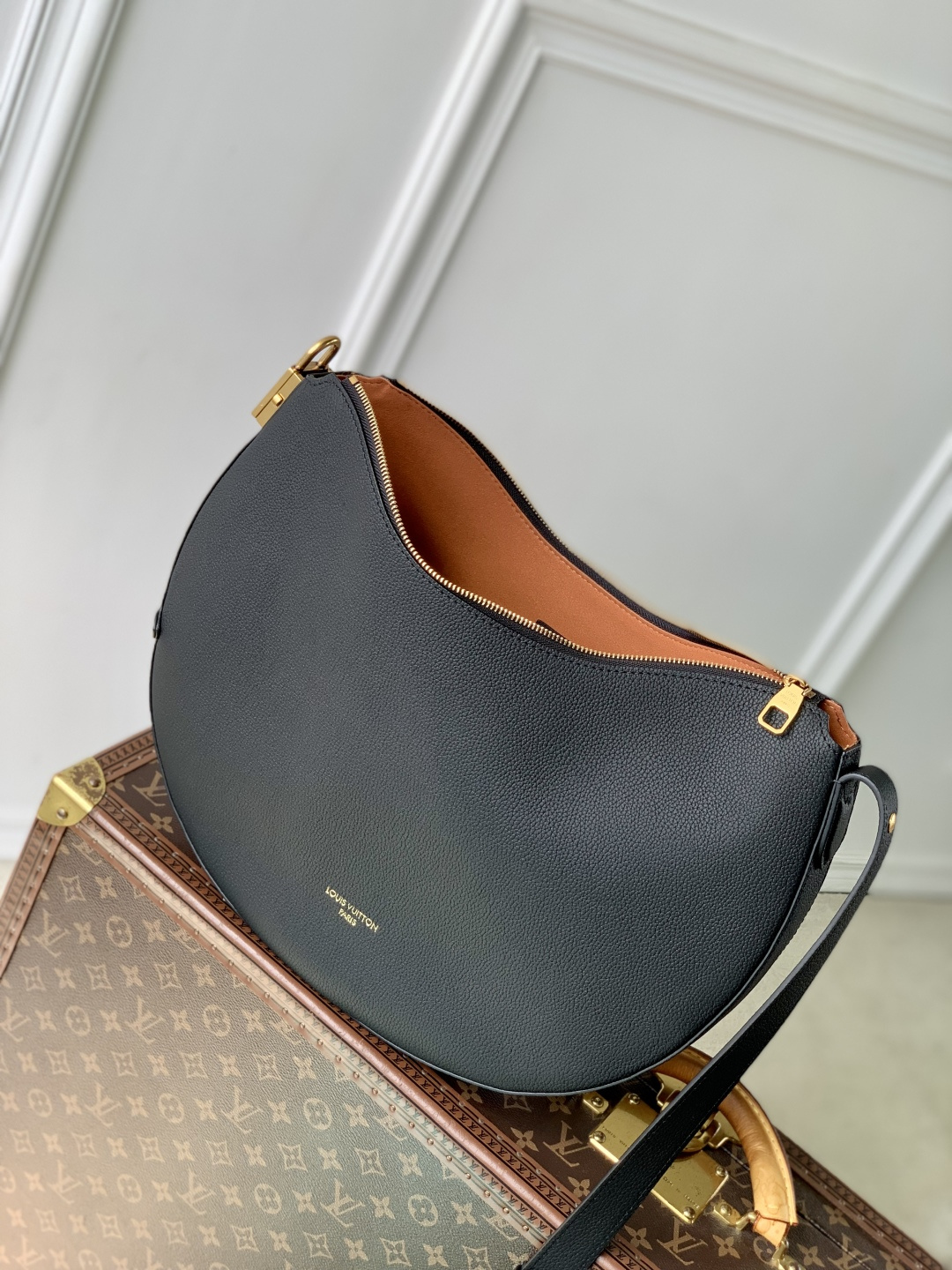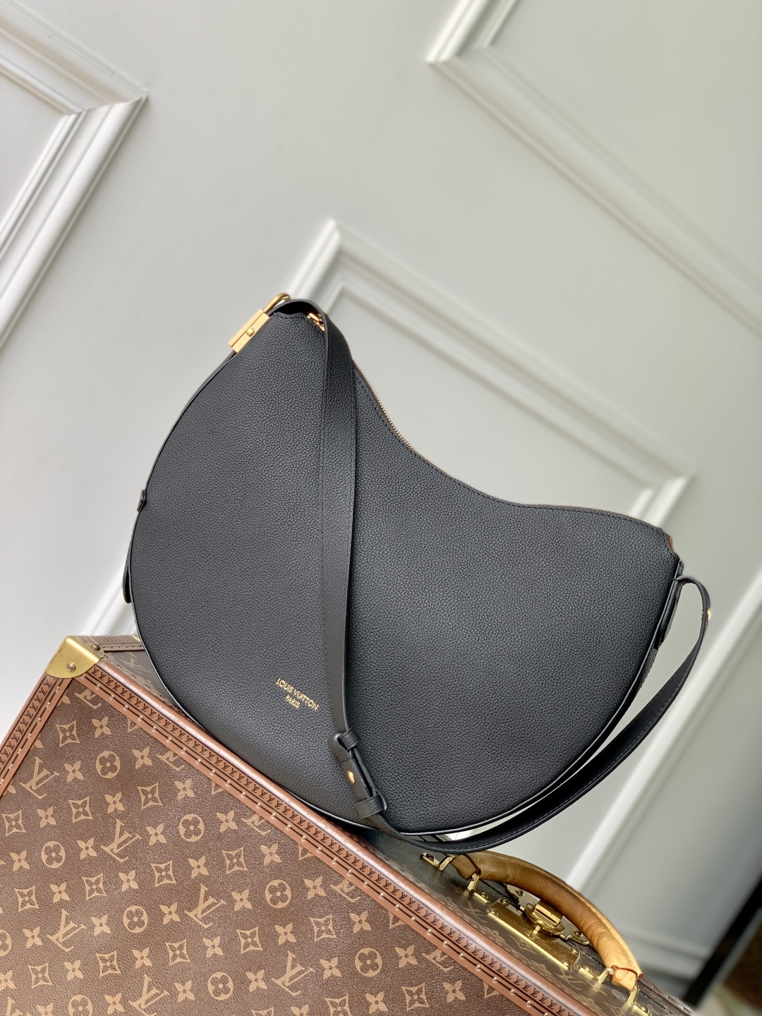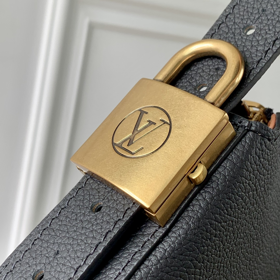 This is a replica LOUIS VUITTON M14417 Low Key Cookie MM Bag. ,32 x 26 x 5 cm ,Black,Calf leather,Calf leather trim,Calf leather lining,Aged gold-colour hardware,Fully zipped closure,1 removable Monogram pouch,Fits 11-inch tablet, smartphone, Clémence long wallet, earphones, keys, sunglasses, lipstick, other belongings,Strap: Non-removable, adjustable,Strap Drop: 34.0 cm,Strap Drop Max: 58.0 cm,Handle: Single