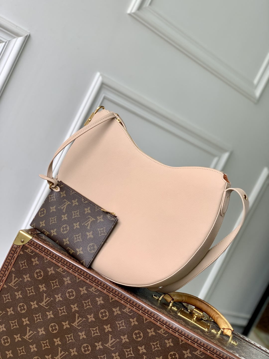 This is a replica LOUIS VUITTON M14635 Low Key Cookie MM Bag. ,32 x 26 x 5 cm ,Walnut,Calf leather,Calf leather trim,Calf leather lining,Aged gold-colour hardware,Fully zipped closure,1 removable Monogram pouch,Fits 11-inch tablet, smartphone, Clémence long wallet, earphones, keys, sunglasses, lipstick, other belongings,Strap: Non-removable, adjustable,Strap Drop: 34.0 cm,Strap Drop Max: 58.0 cm,Handle: Single