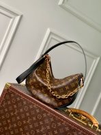 This is a replica LOUIS VUITTON M15056 ,The Cookie BB is crafted from the House’s iconic Monogram coated canvas trimmed with contrasting leather in a directional moon profile. The lightweight style offers a multi-adjustable handle, as well as a detachable golden chain for crossbody wear. Both edges of the bag can also be joined together to create a wristlet-inspired option.,