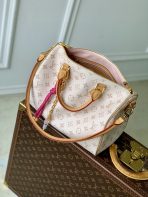 This is a replica LOUIS VUITTON M15108 ,Speedy Soft 30 Lucky,The iconic Speedy Soft 30 Lucky is reinvented with jewel-like embellishments and a contrasting pastel-pink lining to enhance its attention to detail. It is crafted from Monogram Dune canvas with VVN leather trims and is adorned with gold-toned hardware, plus a unique talisman charm and colorful rope knot. Capaciously sized, the versatile design is roomy enough to store a tablet as well as other daily essentials.,